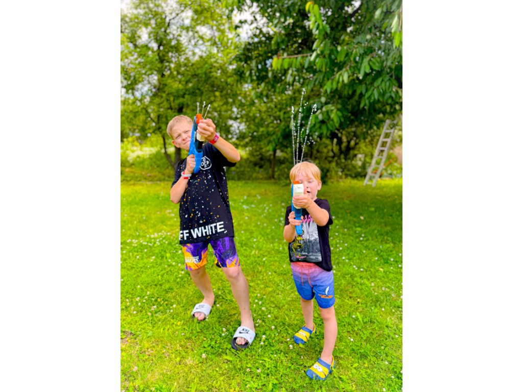 Pevná a krásná vodní pistole se třemi tryskami. Pistole má 300 ml zásobník na vodu.