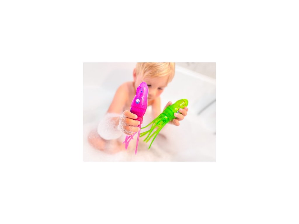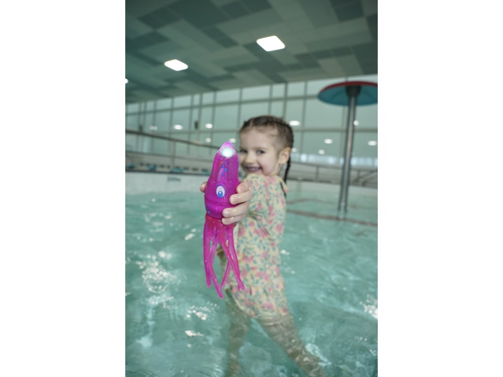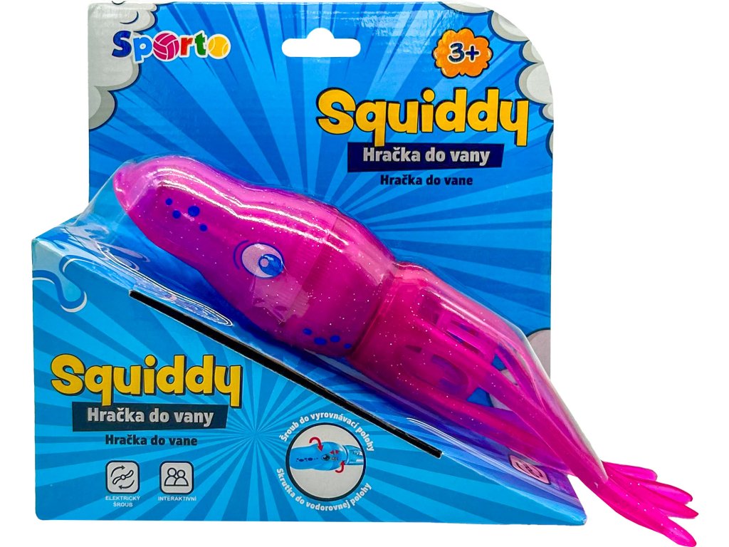 Oliheň Squiddy je velmi rychlá a snaží se ti uplavat. Při nárazu do vany nebo bazénu změní směr a plave dál. Při plavání svítí a otáčí se. Doženeš jí nebo ti uplave? Squiddy je zábavná hračka na léto, ale i na zimu. Může plavat v bazénu nebo ve vaně.