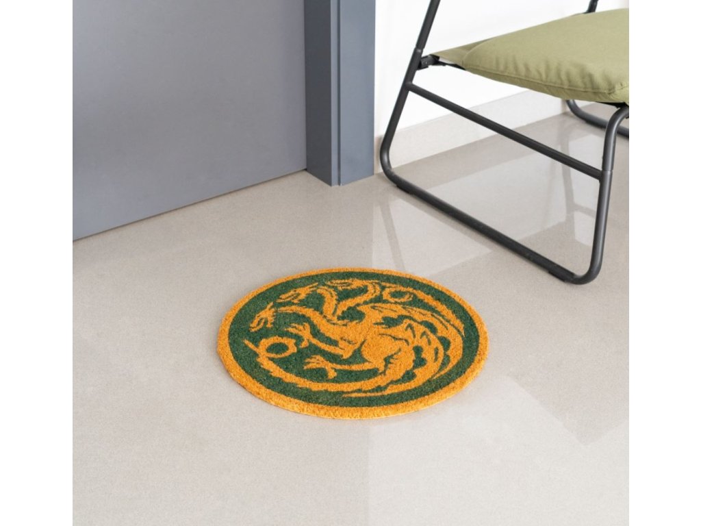 Oficiální produkt - kulatá rohožka z katalogu výrobků s licencí a grafikou populárního amerického fantasy seriálu House of the Dragon (Rod draka).