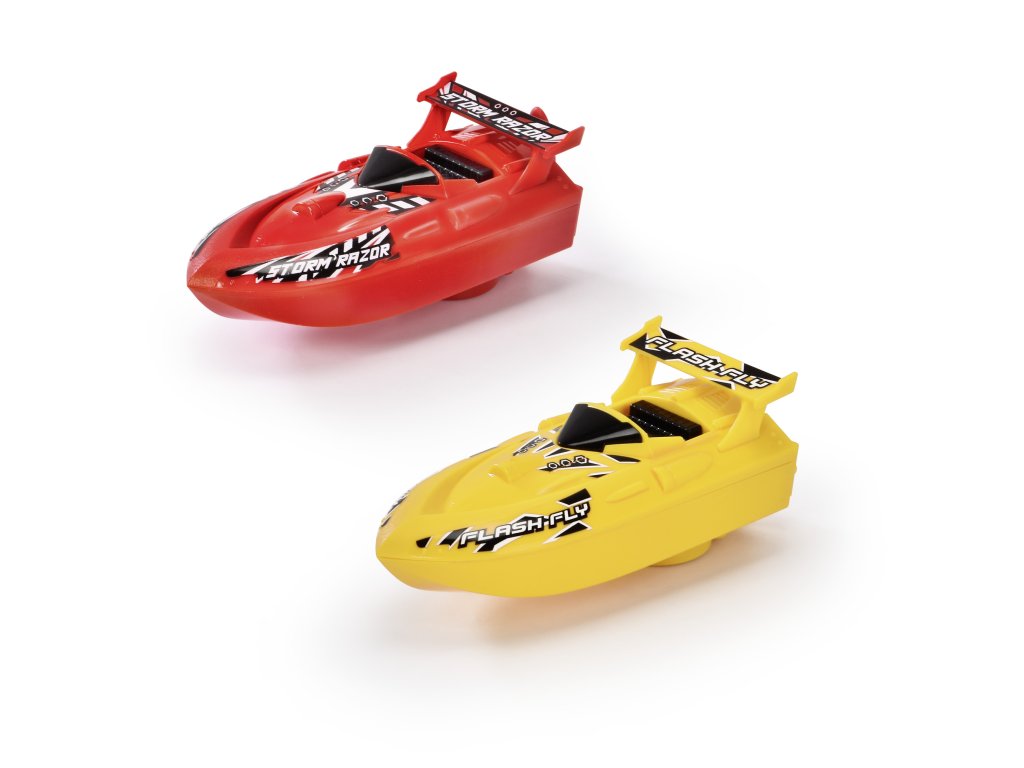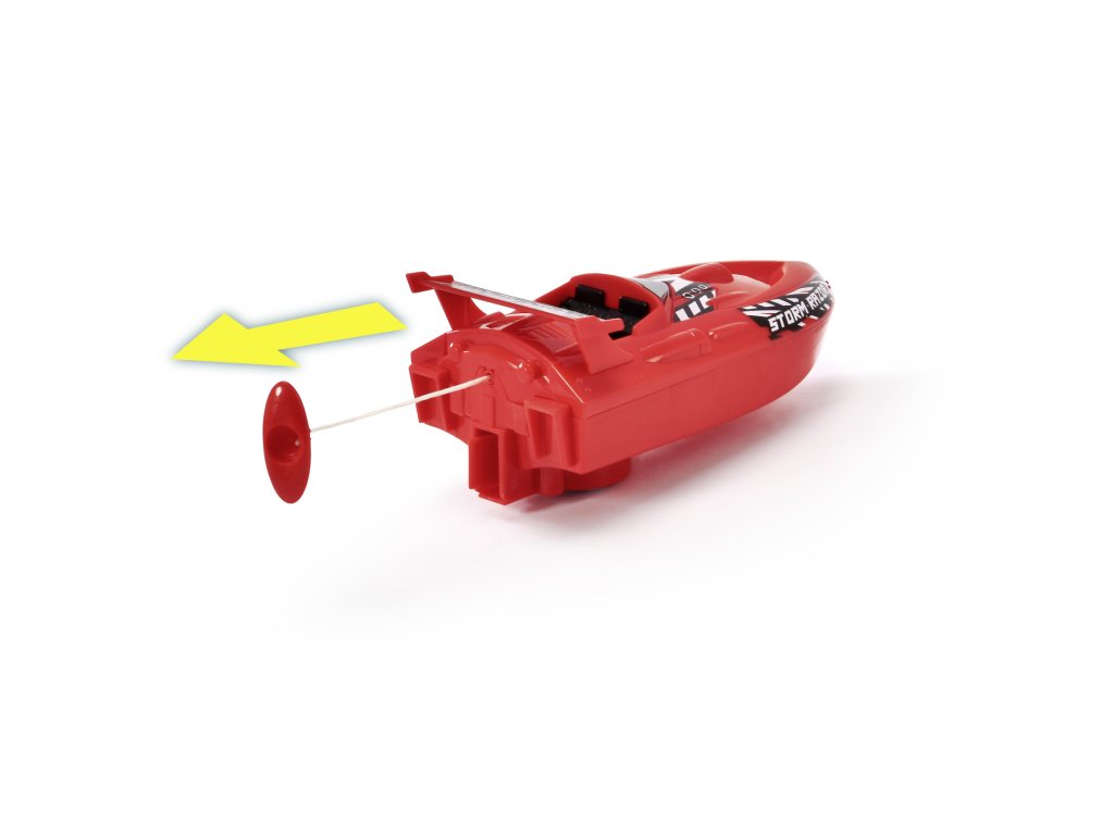 Plastový člun, natažení na šňůrku. Nastavitelné "kormidlo" pro úpravu směru. 2 barevná provedení. Délka 15 cm.
