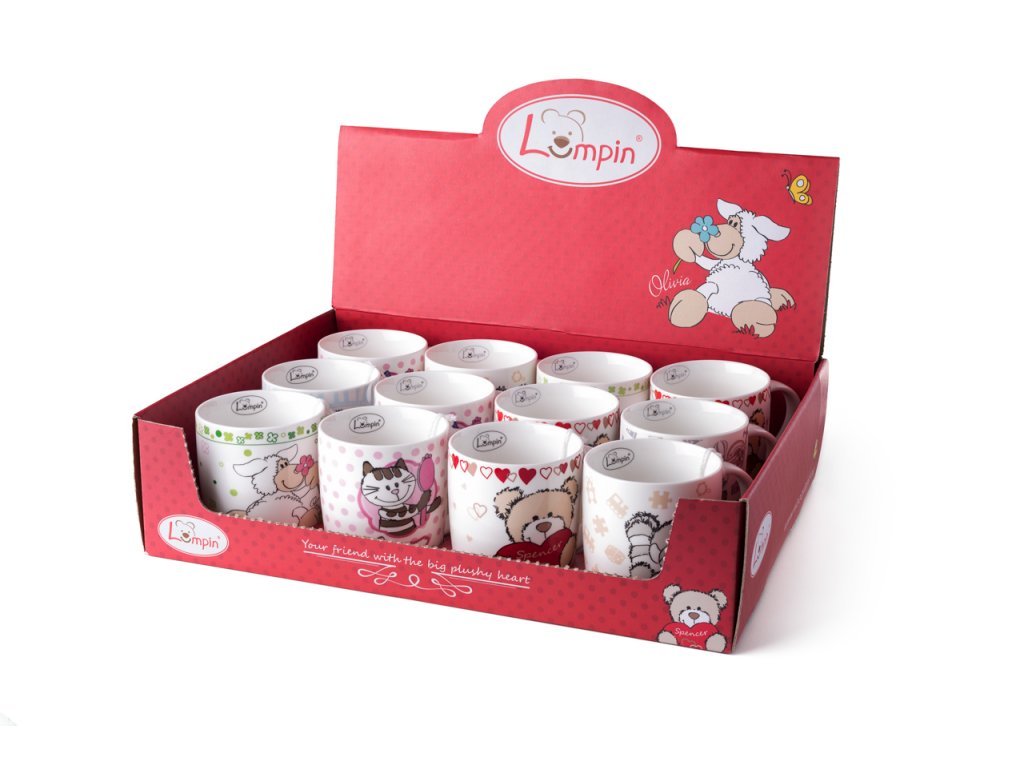 Každý Lumpin má svůj vlastní příběh a i když každý pochází z jiného konce světa, mají mnoho společného. Všichni pro nás chtějí být těmi nejlepšími kamarády, chtějí s námi tvávit náš volný čas, být s námi, když usínáme, probouzíme se i snídáme. A tak jsou nyní i na keramických hrnečcích, třeba medvídek Lumpin, kočka Angelika, ovečka Olivie, slon Elvis a další. Rozměr: 30 x 10 x 10 cm (jeden hrníček). Věk: 3+