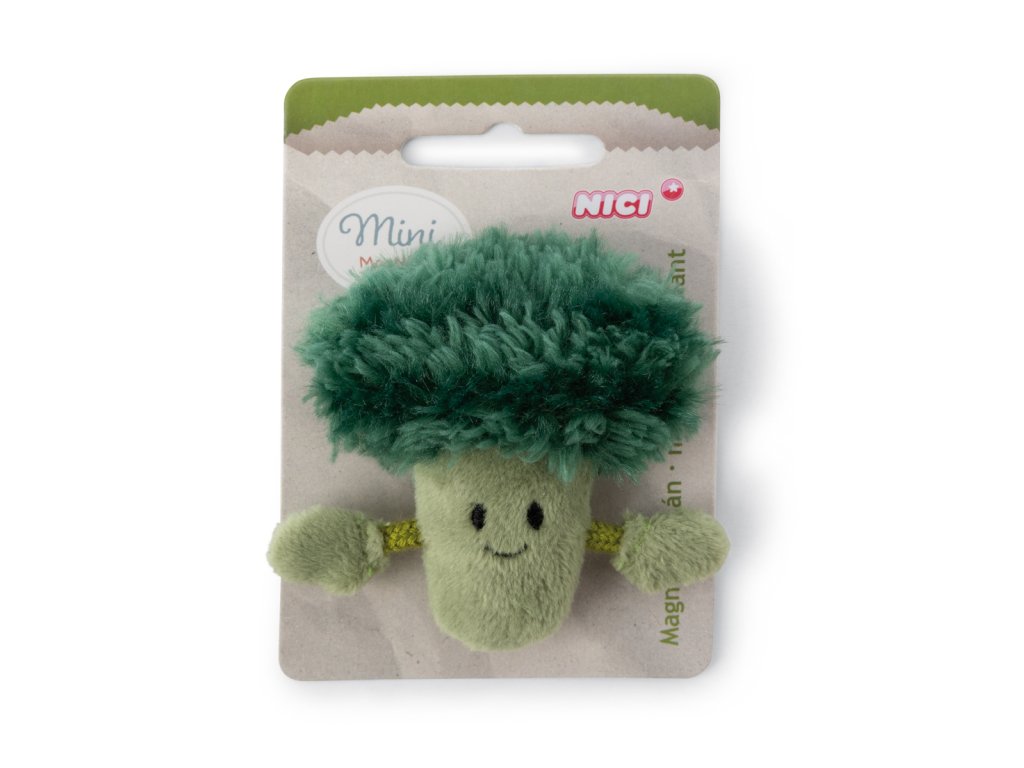 Zelená plyšová brokolice s roztomilými malými ručičkami jako Mini MagNICI je plyšovým magnetem, který je zároveň praktickým i dekorativním doplňkem. Se svým kouzelným výrazem tváře vykouzlí malá brokolice z nadýchaného plyše úsměv na každé tváři a rychle se stane nepřehlédnutelným doplňkem na lednici nebo magnetické tabuli. Mini MagNICI je součástí světa produktů NICI GREEN. Pro produkty NICI GREEN se používá téměř výhradně plyš a výplňový materiál vyrobený z recyklovaných materiálů. Pro tento účel se na RPET zpracovávají primárně recyklované PET lahve. Rozměry MagNICI: 7 x 7 x 2,5 cm. Rozměry balení: 10 x 7 x 2,5 cm. Věk 3+