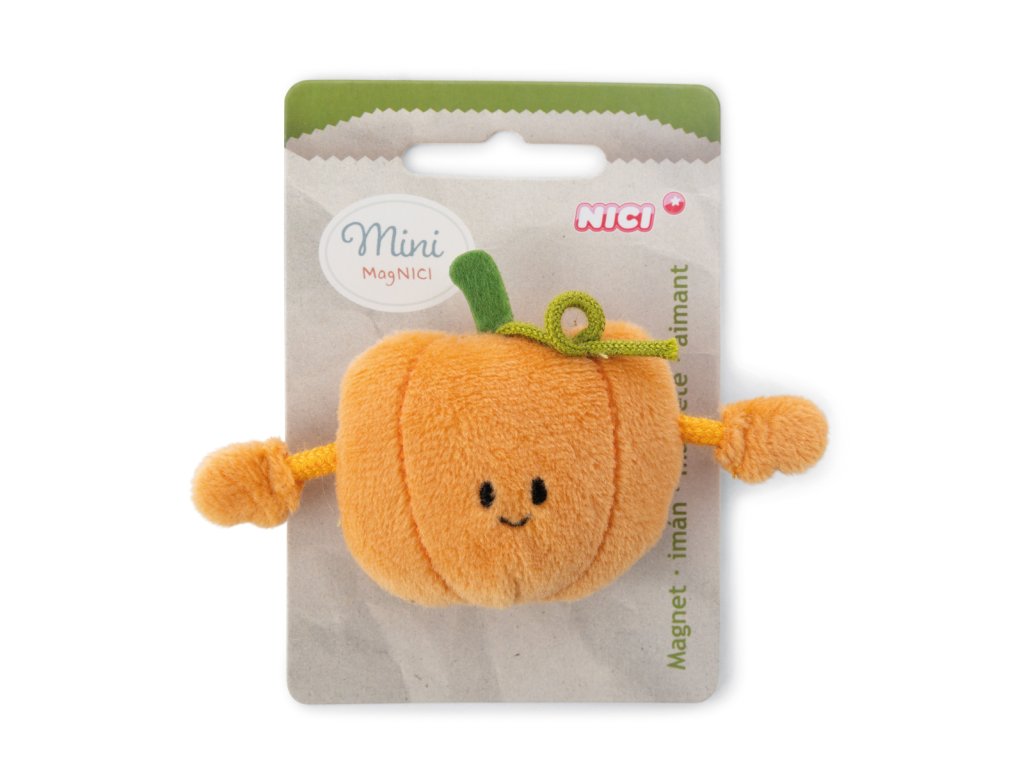 Oranžová plyšová dýně s roztomilými malými ručičkami jako Mini MagNICI je plyšovým magnetem, který je zároveň praktickým i dekorativním doplňkem. Se svým kouzelným výrazem tváře vykouzlí malá dýně z nadýchaného plyše úsměv na každé tváři a rychle se stane nepřehlédnutelným doplňkem na lednici nebo magnetické tabuli. Mini MagNICI je součástí světa produktů NICI GREEN. Pro produkty NICI GREEN se používá téměř výhradně plyš a výplňový materiál vyrobený z recyklovaných materiálů. Pro tento účel se na RPET zpracovávají primárně recyklované PET lahve. Rozměry MagNICI: 6 x 7 x 2,5 cm. Rozměry balení: 10 x 7 x 2,5 cm. Věk 3+