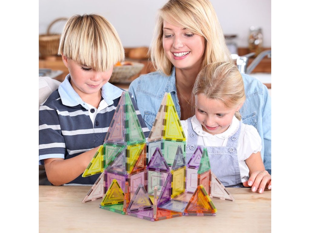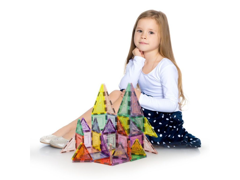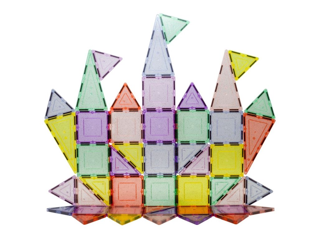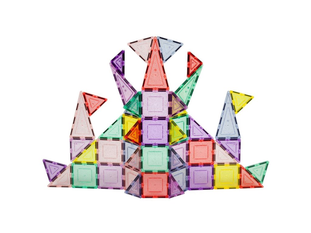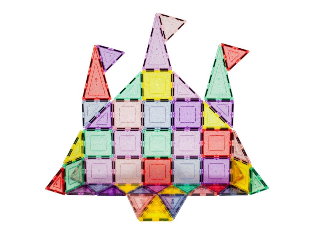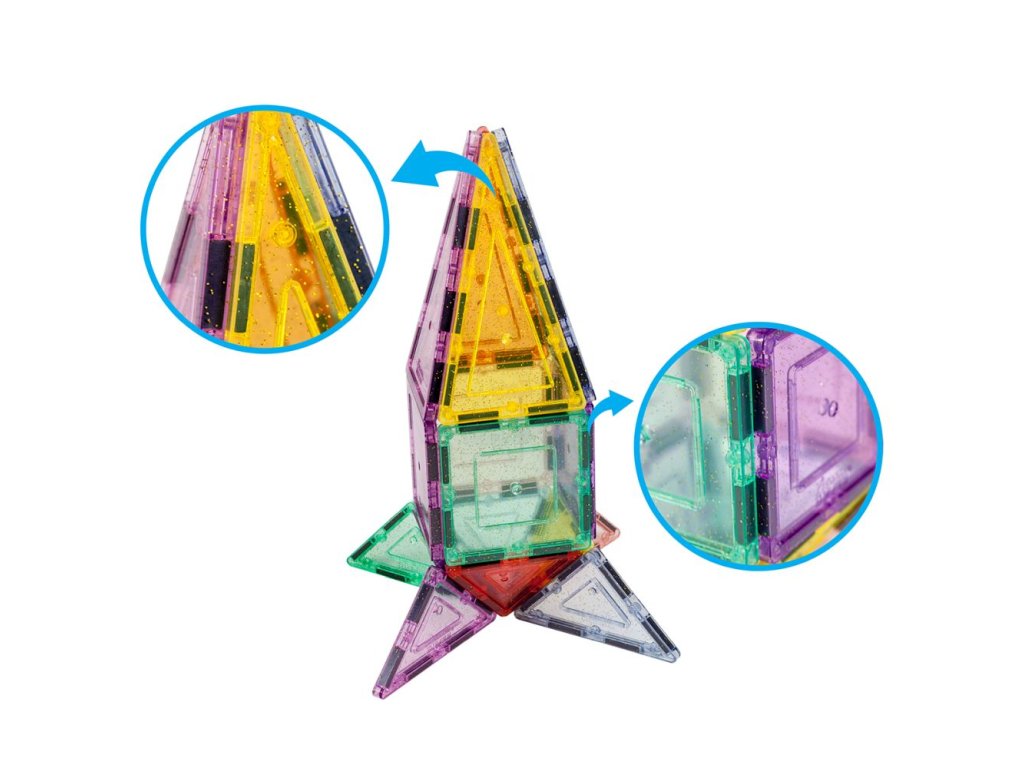 Obsahuje 48 třpytivých magnetických dlaždic. Každý dílek je zdoben lesklými glitry, které přitahují pozornost. Podněcuje děti k kreativitě a fantazii v kouzelném prostředí plném lesku a jasu. Hra s tímto setem je vizuálně poutavá a přináší magický zážitek.