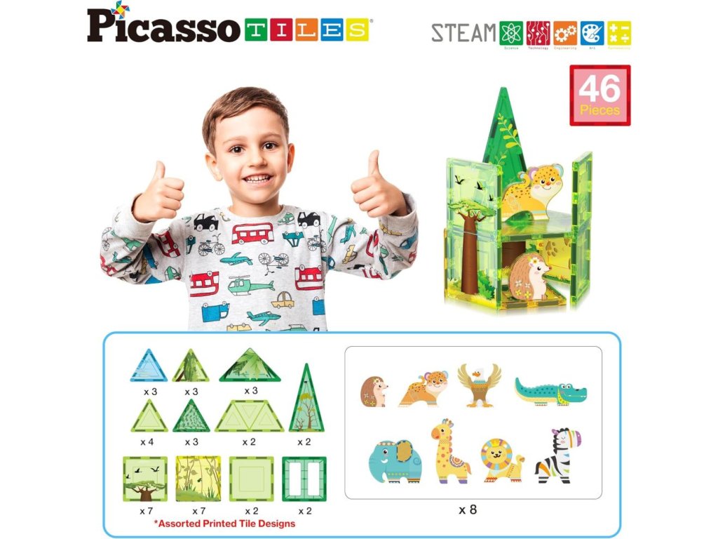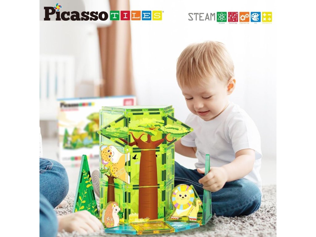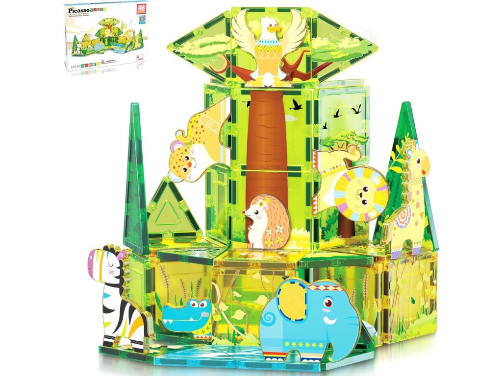 Tento safari-tématický set nabízí dětem dobrodružství v divočině: Obsahuje magnetické dílky s postavičkami zvířat,