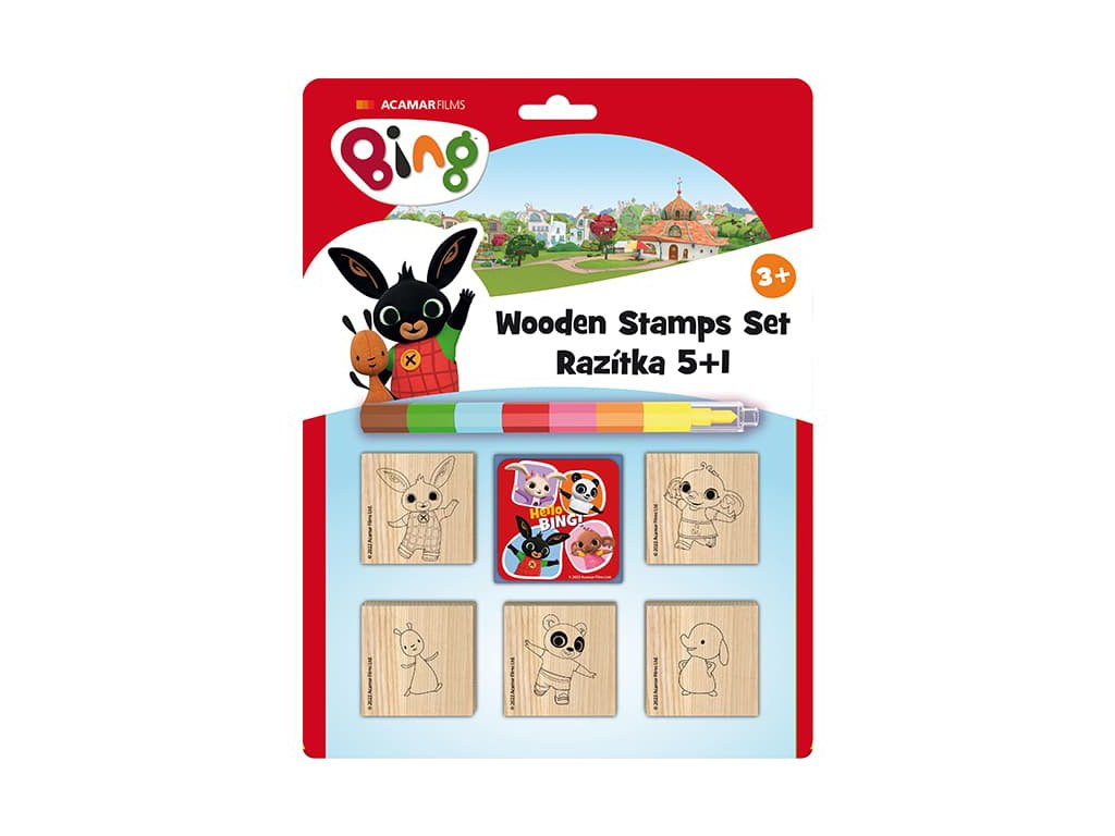 Set obsahuje 5 snadno uchopitelných dřevěných razítek, barevnou podušku s oblíbeným motivem a sedmibarevnou skládací voskovku pro vybarvování.