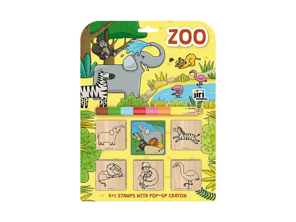 Set obsahuje 5 snadno uchopitelných dřevěných razítek, barevnou podušku s oblíbeným motivem a sedmibarevnou skládací voskovku pro vybarvování.