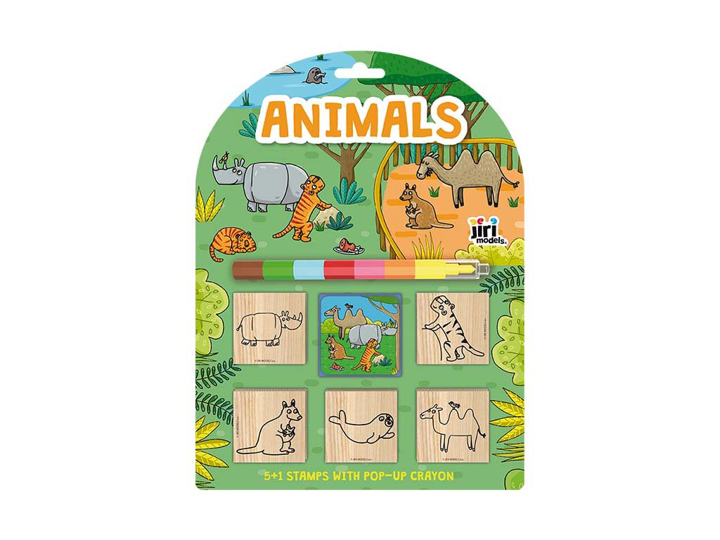 Set obsahuje 5 snadno uchopitelných dřevěných razítek, barevnou podušku s oblíbeným motivem a sedmibarevnou skládací voskovku pro vybarvování.