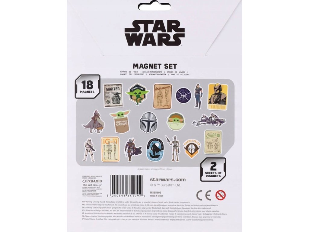 Na dvo listech set celkem 18 magnetů s motivy a znaky space western seriálu Star Wars - The Mandalorian.