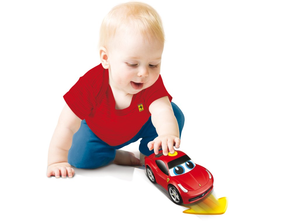 Autíčko Ferrari 458 Italia se zvuky BBJunior z řady Touch & Go. Po stisknutí tlačítka se jasně červené Ferrari rozjede a svým realistickým zvukem motoru rozzáří dětské oči. Toto sportovní auto pomáhá trénovat motorické dovednosti a stimulovat sluchové smysly dětí. Autíčko je vhodné pro děti od 12 měsíců. Napájení autíčka je na dvě baterie AAA, které jsou součástí balení. Velikost autíčka je 5,2 “ (13,2 cm). Rozměr balení: 17,78 x 17,15 x 10,8 cm.