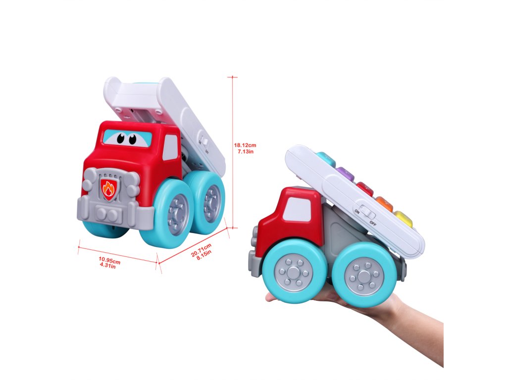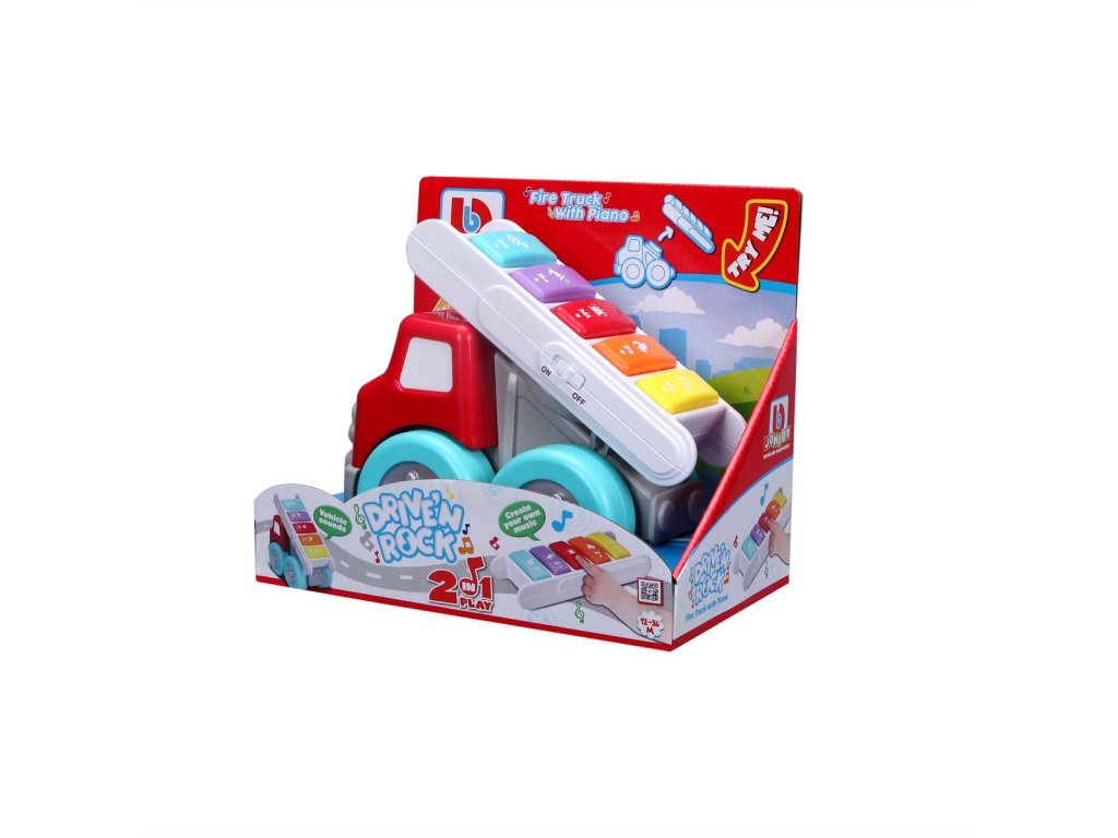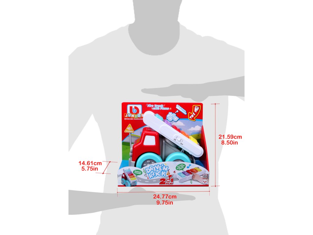 Hasičský vůz s pianem Drive 'N Rock od BB Junior zaručuje spoustu zábavy pro malé děti. Tento hasičský vůz s odnímatelným pianem tak představuje hračku 2 v 1. Piano má dva různé herní režimy, přednastavené melodie nebo možnost volné hry. S tímto autem ´´Drive N Rock´´ můžete přinést Rock 'N Roll do pokojíčku svých dětí a učit je hru na hudební nástroj, ale také podpořit jejich koordinaci ruka-oko. Funguje na 2 baterie AAA, které jsou součástí. Vhodné pro děti od 12 měsíců. Velikost auta 7,9” (20,5 cm). Rozměr balení: 21,6 x 24,8 x 14,6 cm.