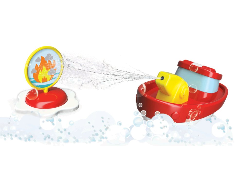 Hasičský člun Splash'N Play od BB Junior zaručuje spoustu zábavy pro malé děti. Umístěte člun na vodní hladinu ve vaně nebo bazénu a sledujte, jak se na palubě automaticky aktivuje požární hadice stříkající vodu. Hasičský člun je připraven chránit vodní cesty před jakýmikoli planoucími předměty, jako je přiložená bóje. Jednoduše zamiřte na svůj cíl a uhaste oheň. Úžasný hasičský člun u dětí rozvíjí princip příčiny a následku, předstíranou hru a zajišťuje hodiny zábavy. Funguje na 2 baterie AAA, které nejsou součástí. Vhodné pro děti od 24 měsíců. Velikost člunu: 5,9” (15 cm). Rozměr balení: 17,78 x 24,13 x 12,07 cm.