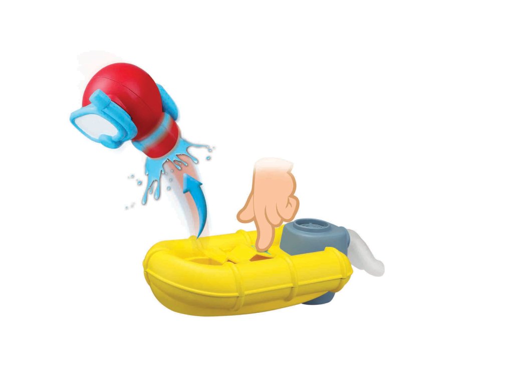 Záchranný člun Splash'N Play od BB Junior zaručuje spoustu zábavy pro malé děti. Jednoduše umístěte člun na vodní hladinu ve vaně nebo bazénu a motor člunu aktivuje bublinový a světelný efekt. Stisknutím páčky pošlete figurku potápěče přes palubu, aby zahájil svou záchrannou misi. Úžasný záchranný člun u dětí rozvíjí princip příčiny a následku, předstíranou hru a zajišťuje hodiny zábavy. Funguje na 3 baterie AAA, které nejsou součástí. Vhodné pro děti od 24 měsíců. Velikost člunu: 5,9” (15 cm). Rozměr balení: 17,78 x 24,13 x 12,07 cm.
