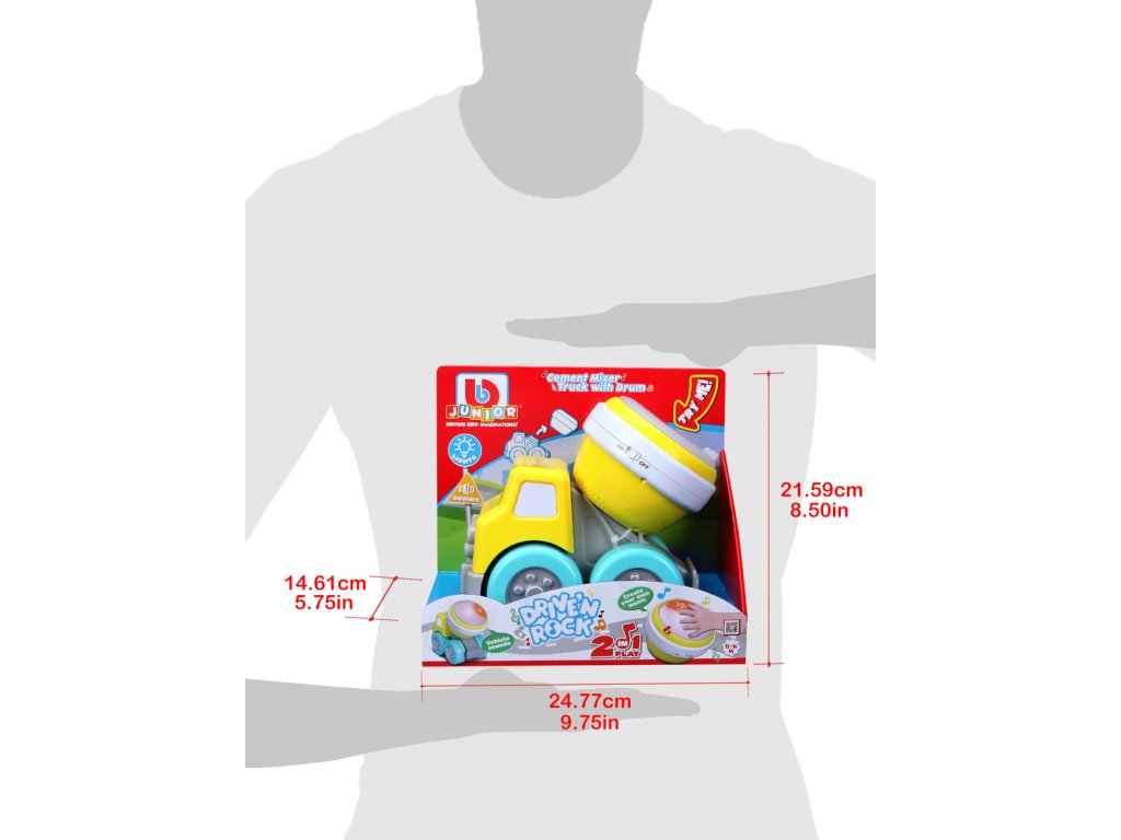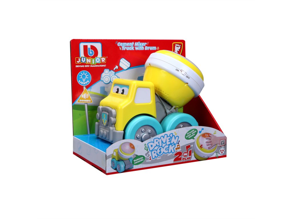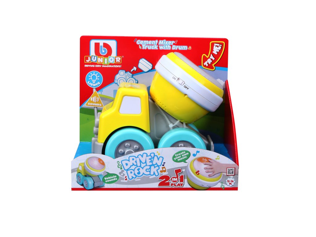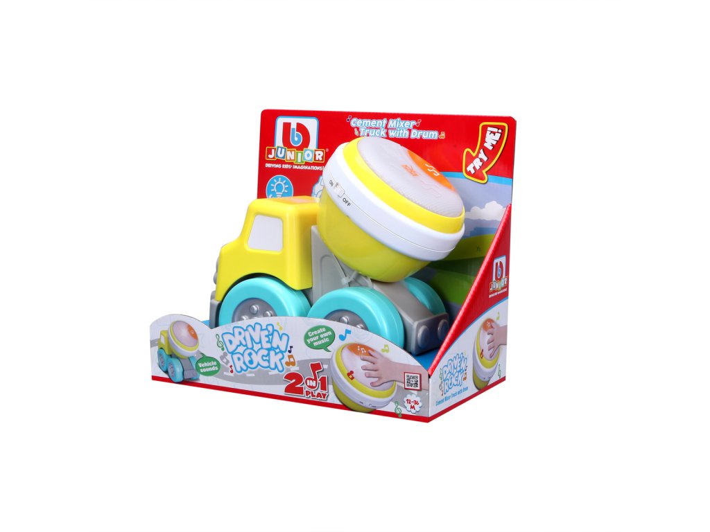 Míchačka s bubínkem Drive 'N Rock od BB Junior zaručuje spoustu zábavy pro malé děti. Toto barevné autíčko s míchačkou má odnímatelný bubínek a představuje tak hračku 2 v 1. Bubínek má dva různé herní režimy, přednastavené melodie nebo možnost volné hry. S tímto autem ´´Drive N Rock´´ můžete přinést Rock 'N Roll do pokojíčku svých dětí a učit je hru na hudební nástroj, ale také podpořit jejich koordinaci ruka-oko. Funguje na 2 baterie AAA, které jsou součástí. Vhodné pro děti od 12 měsíců. Velikost auta 7,9” (20,5 cm). Rozměr balení: 21,6 x 24,8 x 14,6 cm.