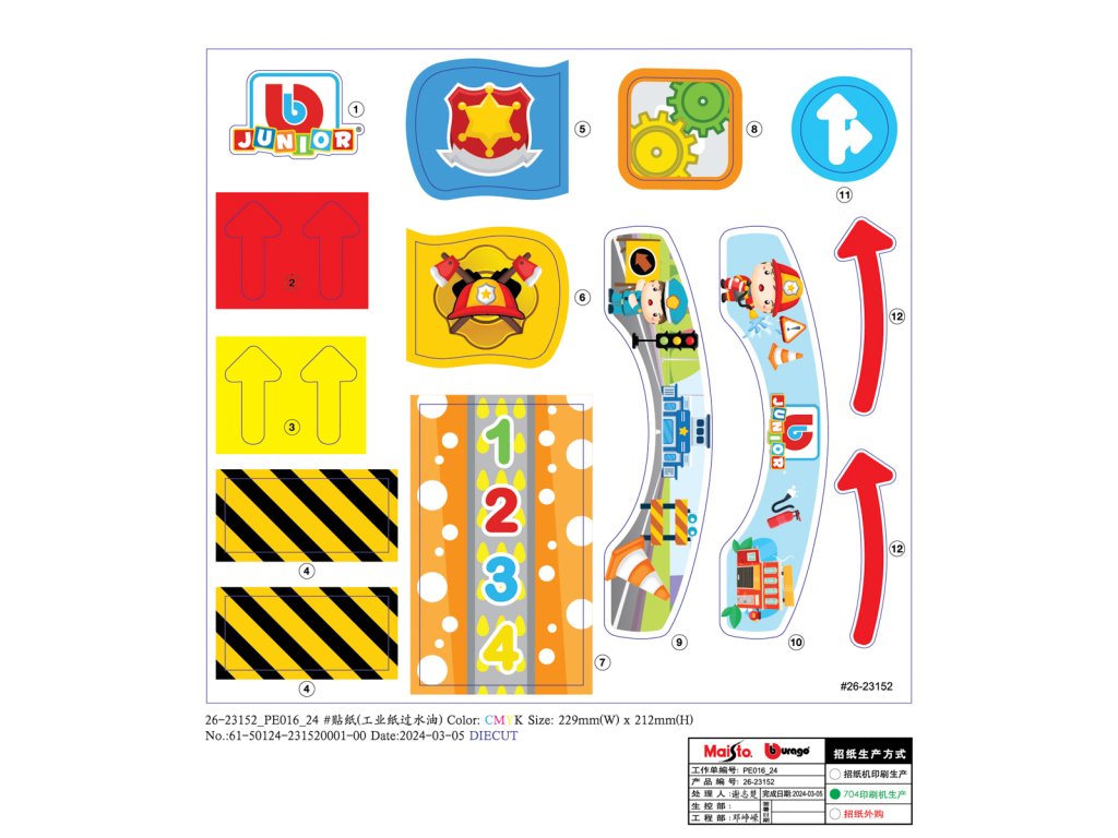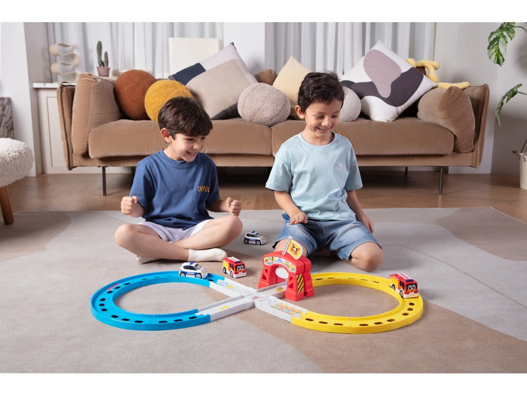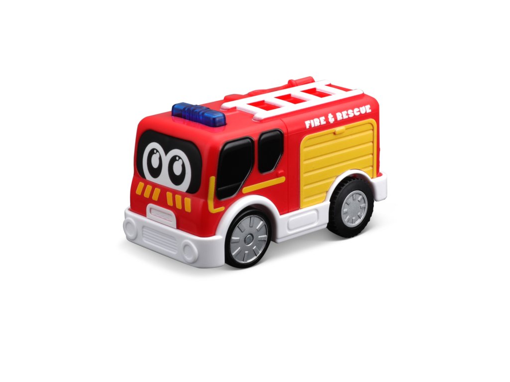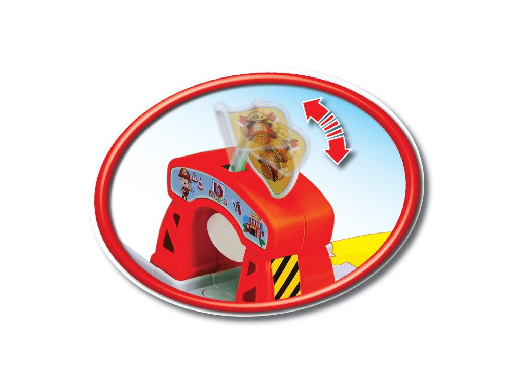 Závodní dráha s hasičským autíčkem BB Junior. Snadno sestavitelná nekonečná dráha s tunelem. Funguje na principu zatřesení autíčkem, které se poté pustí po závodní dráze a jezdí. Při projetí autíčka tunelem se pohybuje vlajka umístěná na tunelu. Hasičské autíčko má světelné efekty. Rozměr závodní dráhy: 44 x 97 x 18 cm. Rozměr balení: 16,5 x 22,9 x 15,2 cm. Věk: 24 m+