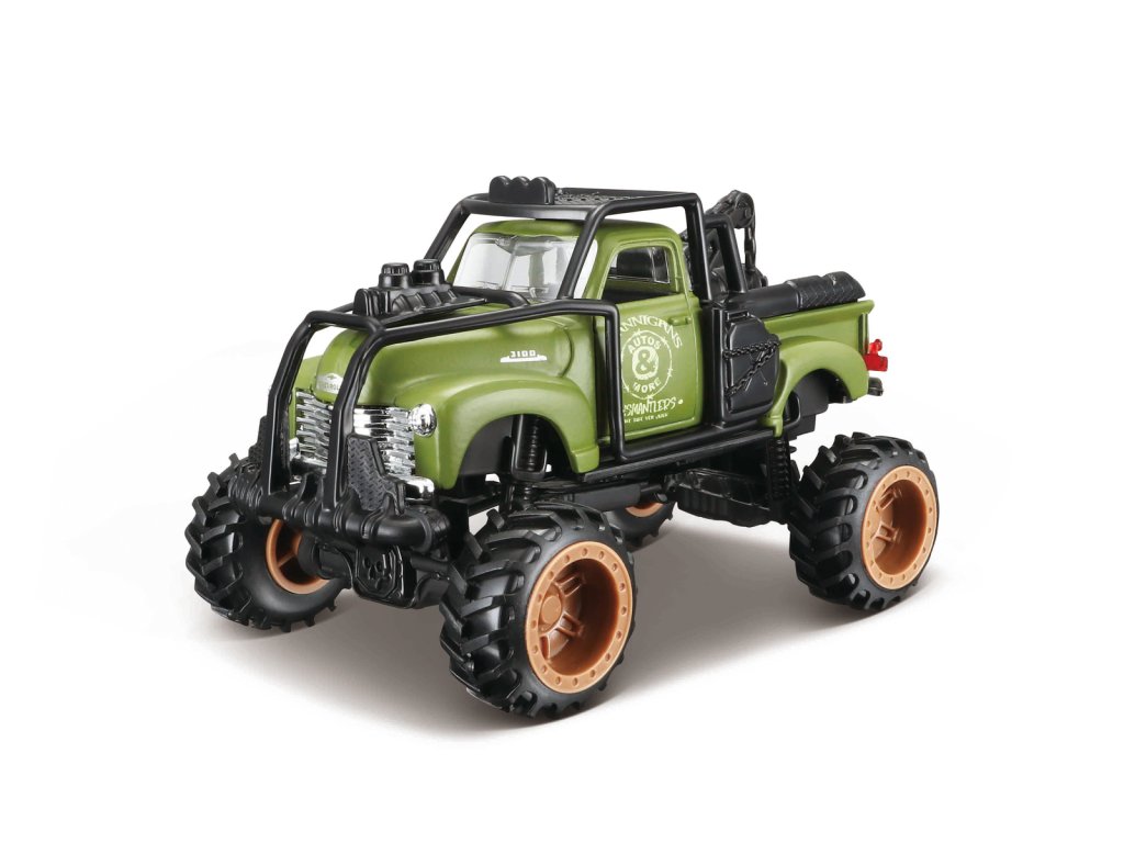 Desert Rebels. Kovové modely aut v provedení off-road, odnimatelný plastový rám, otevíraní dveří. Plastové doplňky. K dispozici 12 variant: Ford Mustang Gt 2015 Blue, Ford Mustang Gt 2015 Red, Dodge Challenger 2006 Green, Dodge Challenger 2006 Yell, 1953 Chevrolet 3100 Green, 1953 Chevrolet 3100 White, Chevrolet Corvette 1978 Red, Chevrolet Corvette 1978 Silver, Jeep Wrangler 2003 Black, Jeep Wrangler 2003 Red, 1949 Ford Green, 19149 Ford Yell. Baleno v krabičce. Assort je náhodný mix modelů. Výběr nelze ovlivnit. Věk: 3+