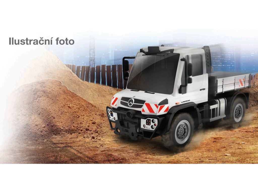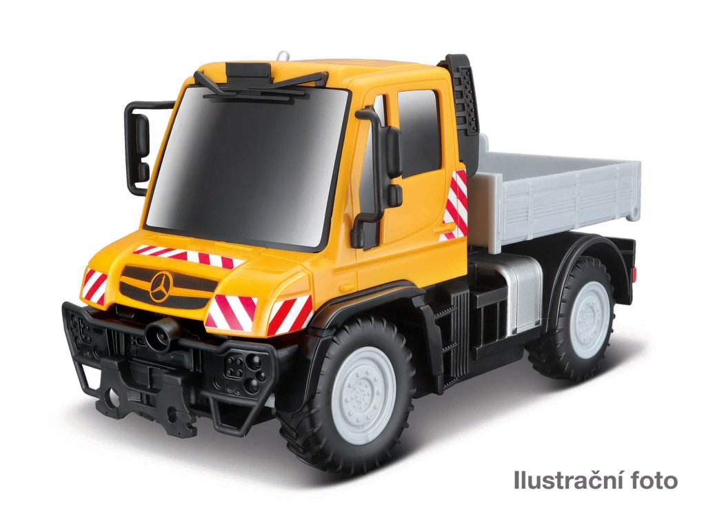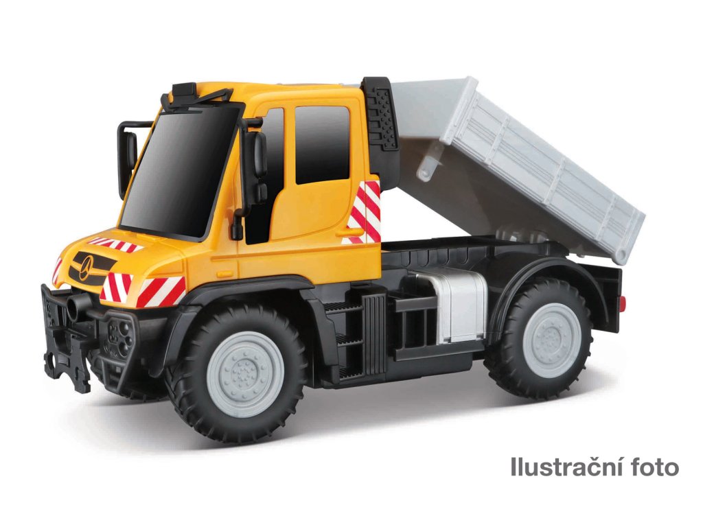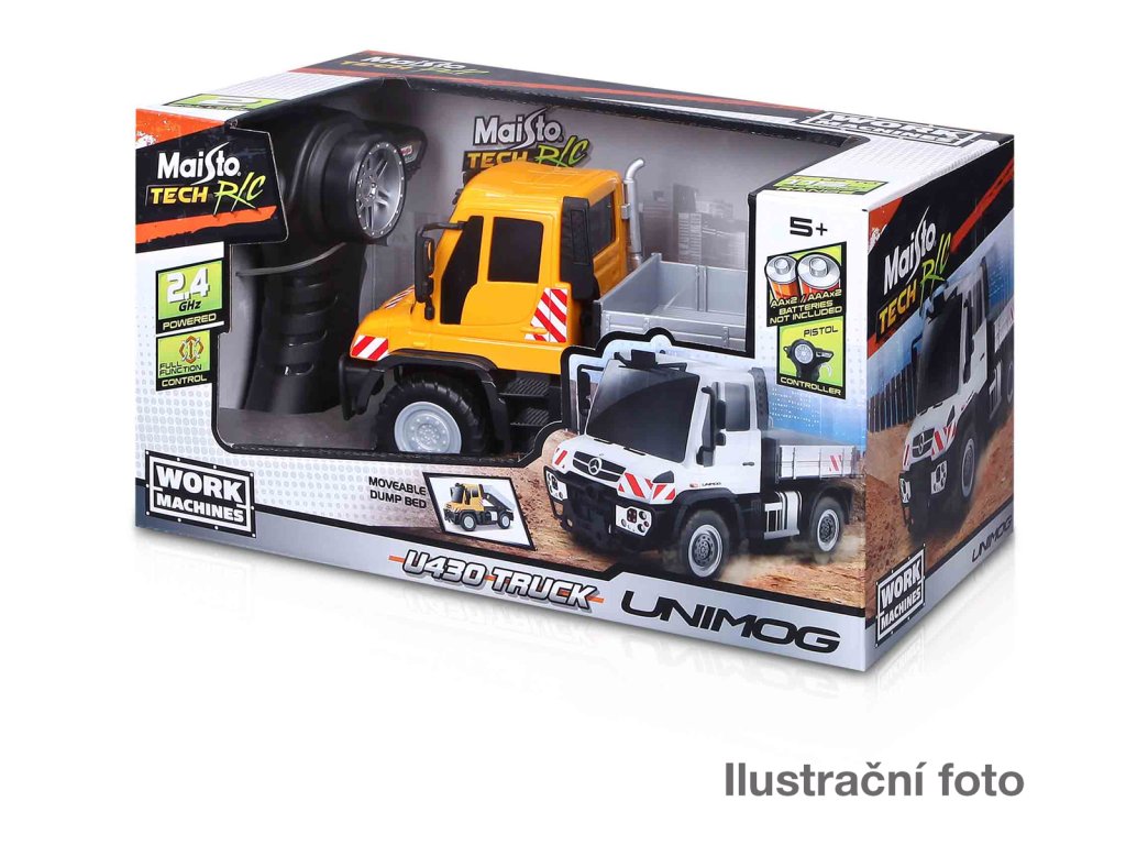 Tech RC, Unimog U430 Truck. RC model pracovního stroje. Kromě jízdy vpřed & vzad a zatáčení vpravo & vlevo má i funkční sklápěčku. Potřebuje celkem 4 tužkové baterie, které nejsou součástí balení. Vysílač - 1,5V AAA – 2x. Model - 1,5V AA – 2x. Frekvence 2,4 GHz umožňuje souběžnou jízdu až se 4 auty najednou. Dosah vysílače: 35 metrů, rychlost: 5,4 km/h, doba jízdy: 25 minut. Varianty k dispozici: Unimog U430 Truck, Mack Granite Refuse Truck - 2,4 GHz, Bobcat T590 Compact Track Loader. Délka modelu cca 20 cm. Nevhodné pro děti do 3 let. Assort je náhodný mix modelů. Výběr nelze ovlivnit. Věk: 5+