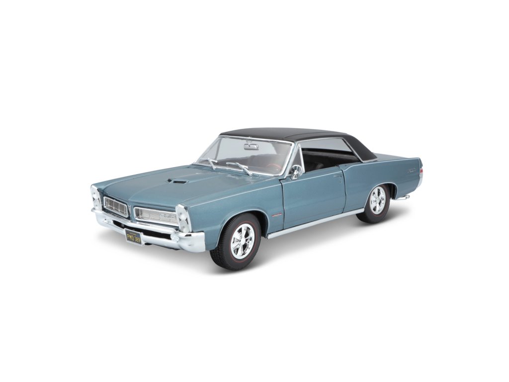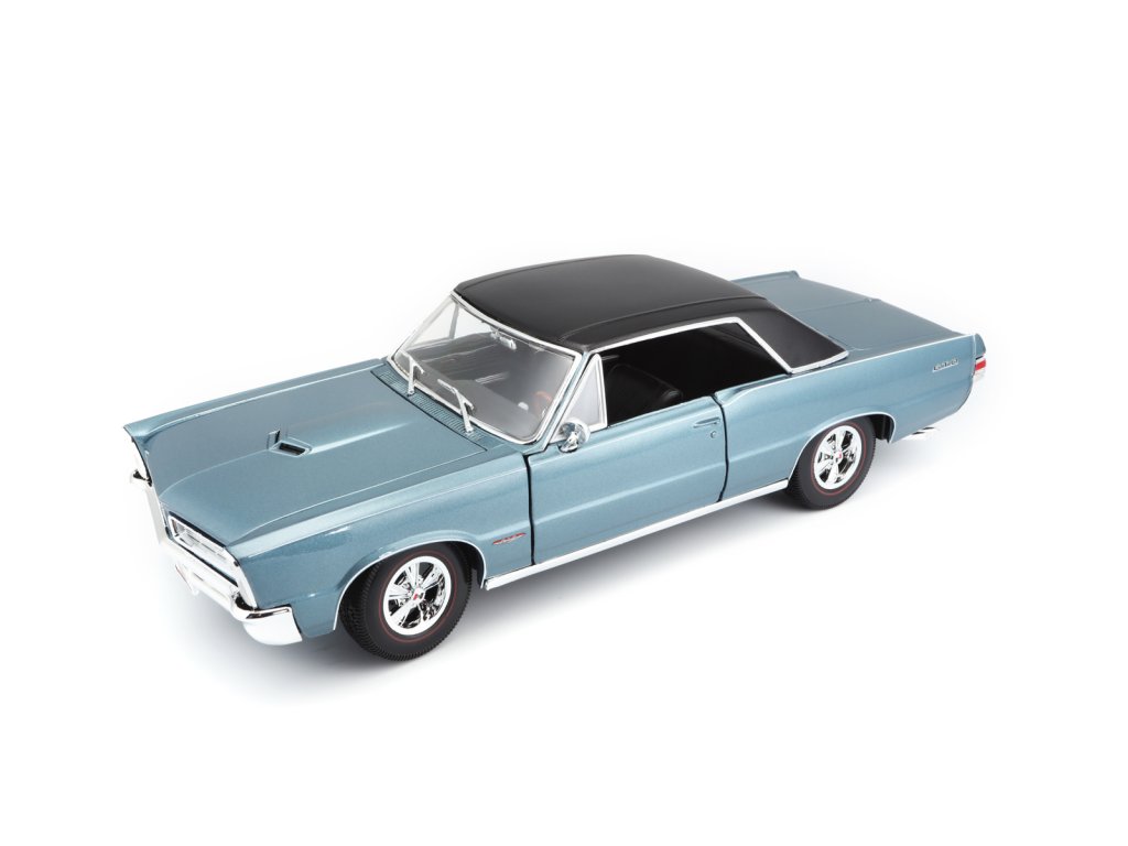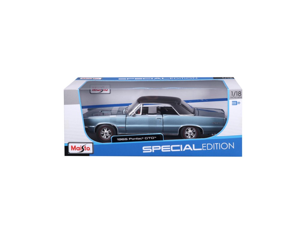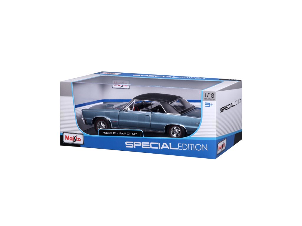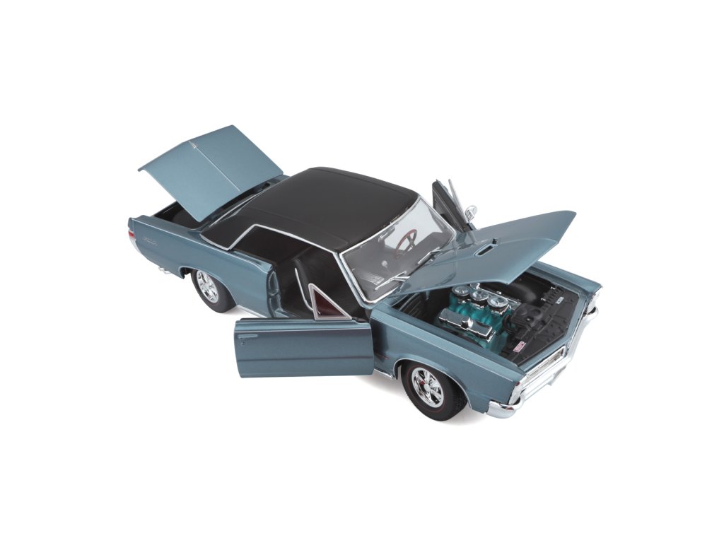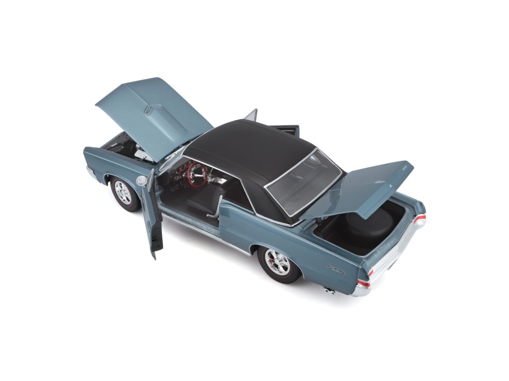 1965 Pontiac GTO, metal modrá. Skvěle propracovaný model překvapí detailním zpracováním interiéru i exteriéru. U modelu lze otevřít dveře, víko motoru a kufru Baleno v krabičce. Rozměry balení: 33x12,4x16,4cm Věk: 3+