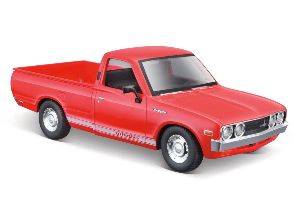1973 Datsun 620 Pick-up. Kovové modely Maisto v měřítku 1:24 patří mezi nejoblíbenější. Mají velmi dokonalé detailní provedení jednotlivých částí a kvalitní barevné provedení. Má otevíratelnou přední kapotu a přední dveře. Baleno v krabičce. Nevhodné pro děti do 3let. Rozměry balení: 22,8x10,5x11,4cm. Věk: 3+