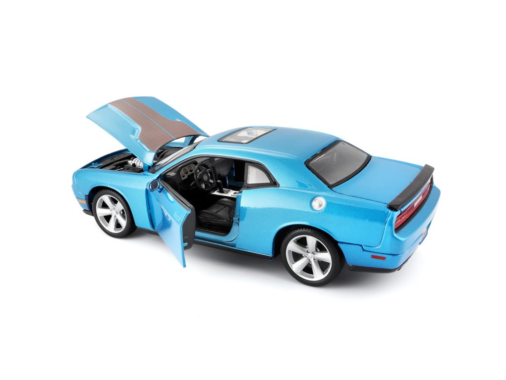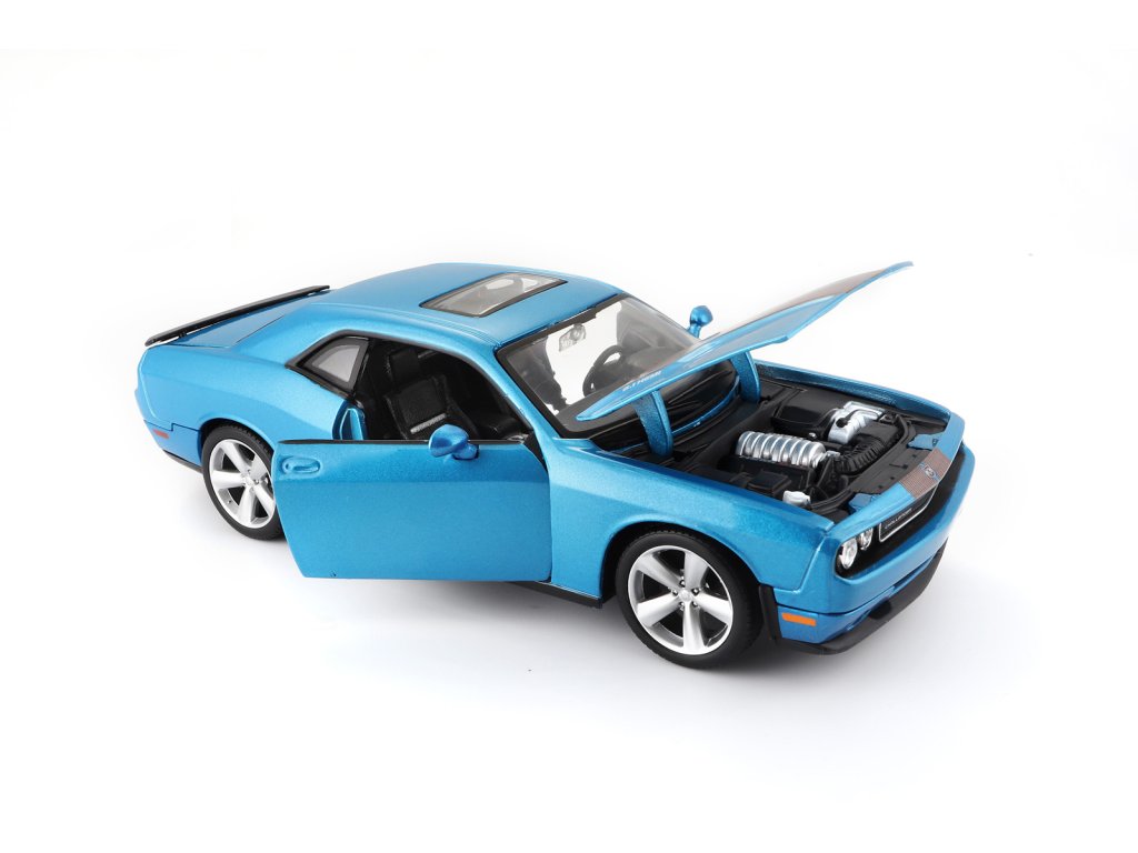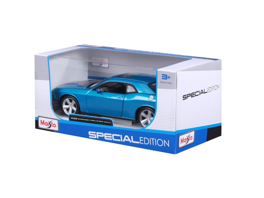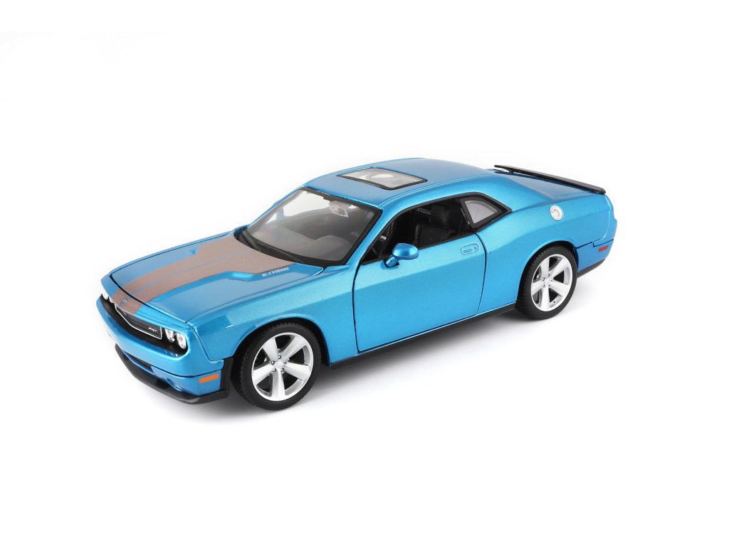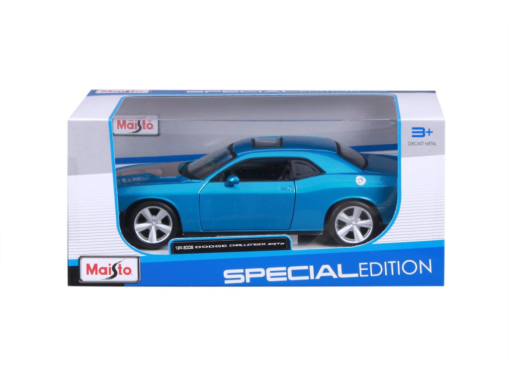 2008 Dodge Challenger SRT8, metal modrá. Kovové modely Maisto v měřítku 1:24 patří mezi nejoblíbenější. Mají velmi dokonalé detailní provedení jednotlivých částí a kvalitní barevné provedení. Má otevíratelnou přední kapotu a přední dveře. Baleno v krabičce. Nevhodné pro děti do 3let. Rozměry balení: 22,8x10,5x11,4cm. Věk: 3+