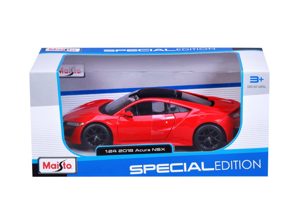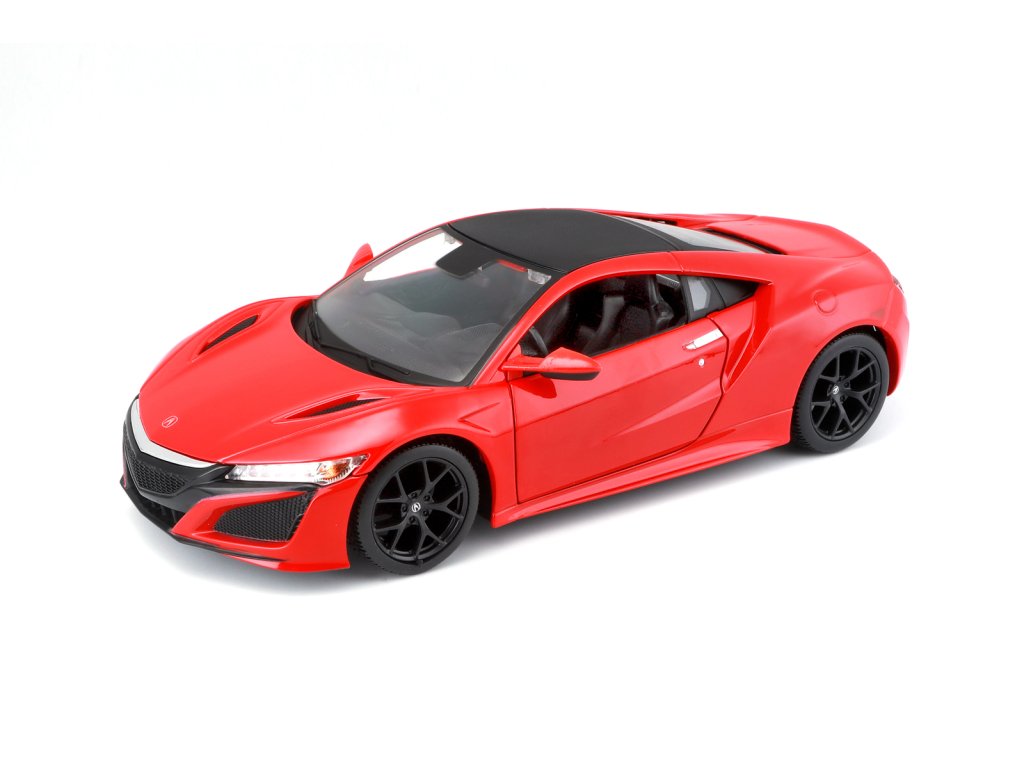 2017 Acura NSX. Model sportovního auta značky Acura v měřítku 1:24. Model má velmi dokonalé, detailní provedení jednotlivých částí a kvalitní barevné provedení. Auto má otevíratelné dveře. Kovový model s plastovými doplňky v atraktivní červené barvě. Rozměry balení: 22,8x10,5x11,4cm. Věk: 3+