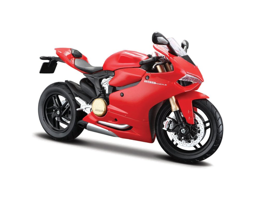 Ducati 1199 Panigale. Model motocyklu se skládá podle obrázkového návodu, který je součástí stavebnice. Jednotlivé části se spojují tlakem bez pomoci lepidla. Kovové části jsou natřené netoxickými barvami. Není potřeba je dobarvovat. Stavebnice obsahuje šroubovák. Balení:18,5x25,5x5,5cm. Věk: 8+