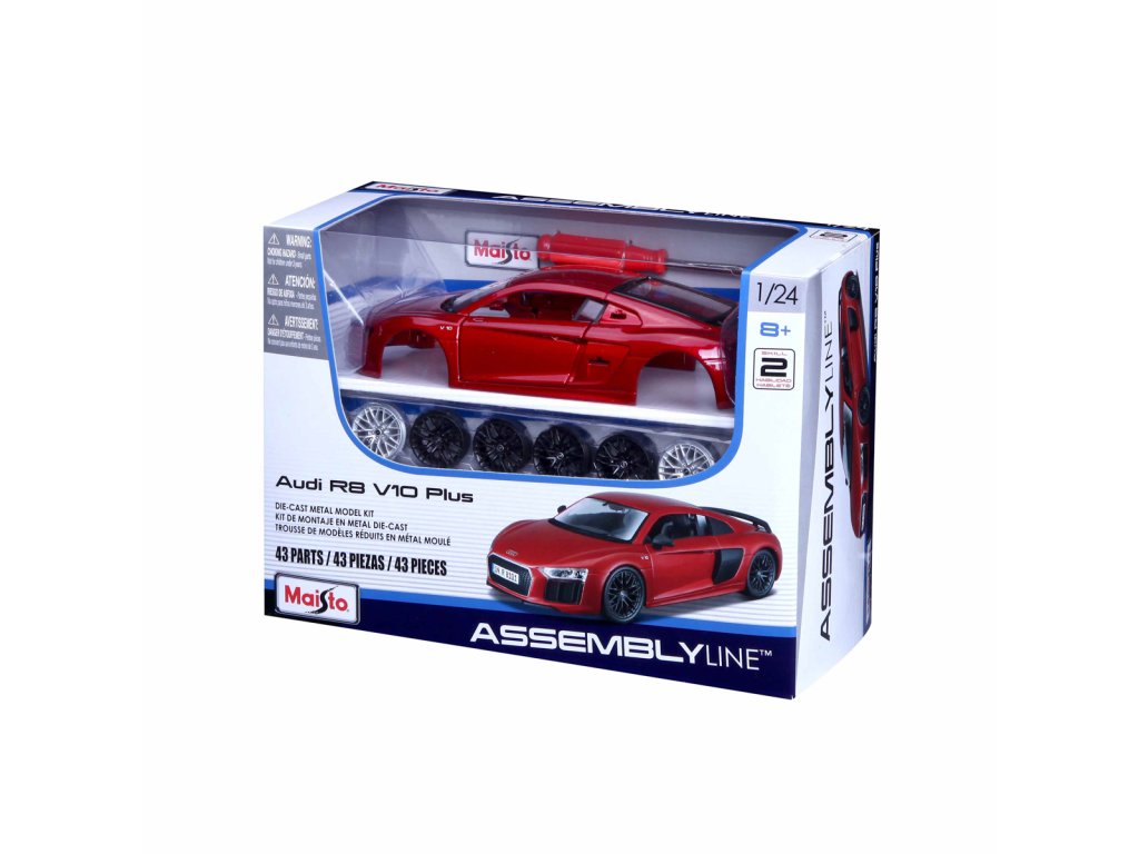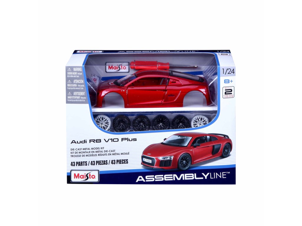 Maisto - Audi R8 V10 Plus, metal červená, assembly line, 1:24