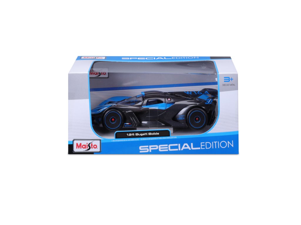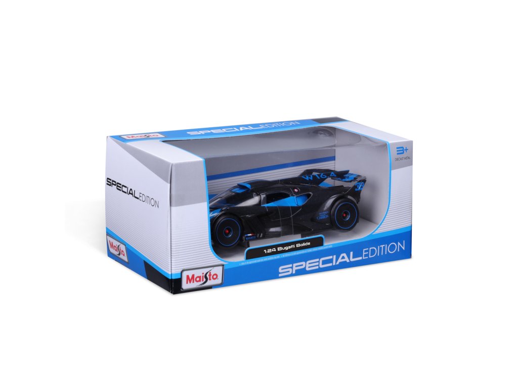 Model Bugatti Bolide v klasickém lakování Bugatti 1:24. Speciální edice detailně modré, Bugatti Bolide přichází ve sběratelské edici Maisto. Dekorativní sběratelský Model miniatur je skvělým kouskem do sběratelského pouzdra. Věrná replika: sběratelské auto je vyrobeno z vstřikovaného kovu, lisovaného z plastu a má délku přibližně 20 cm. Rozměry produktu: 22,8x10,5x11,4 cm, 370 gramů. Věk: 3+