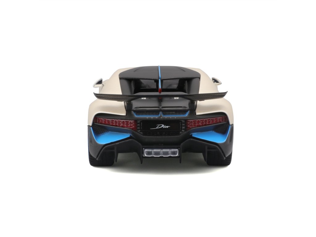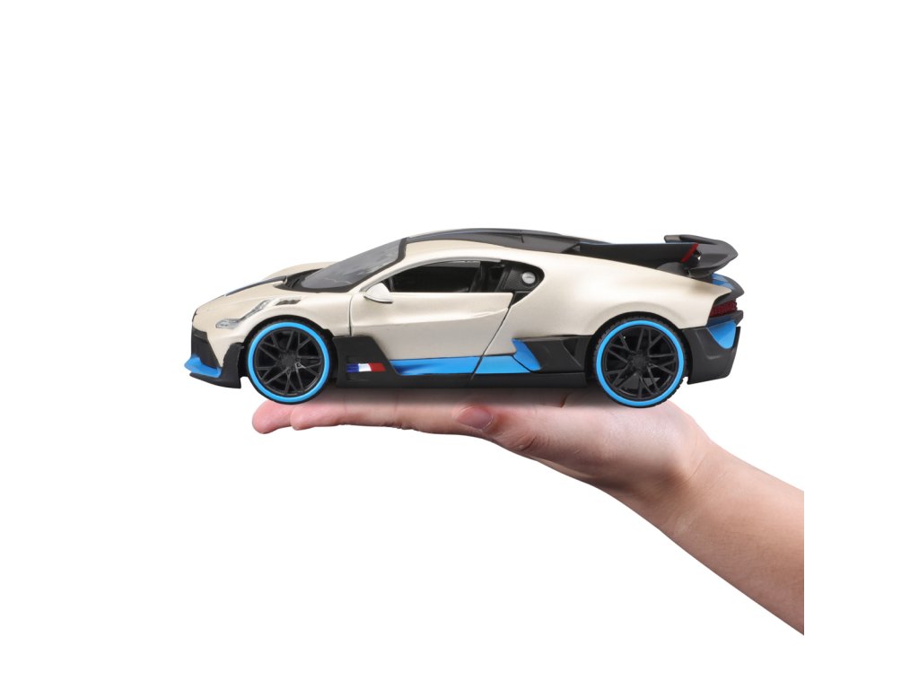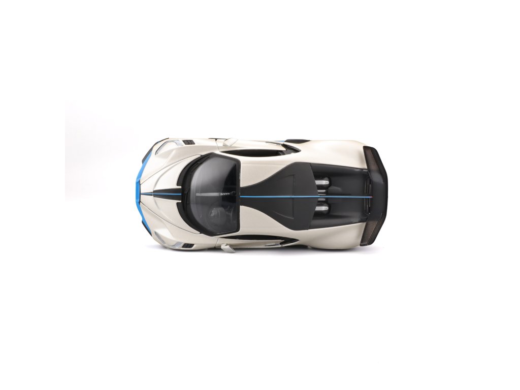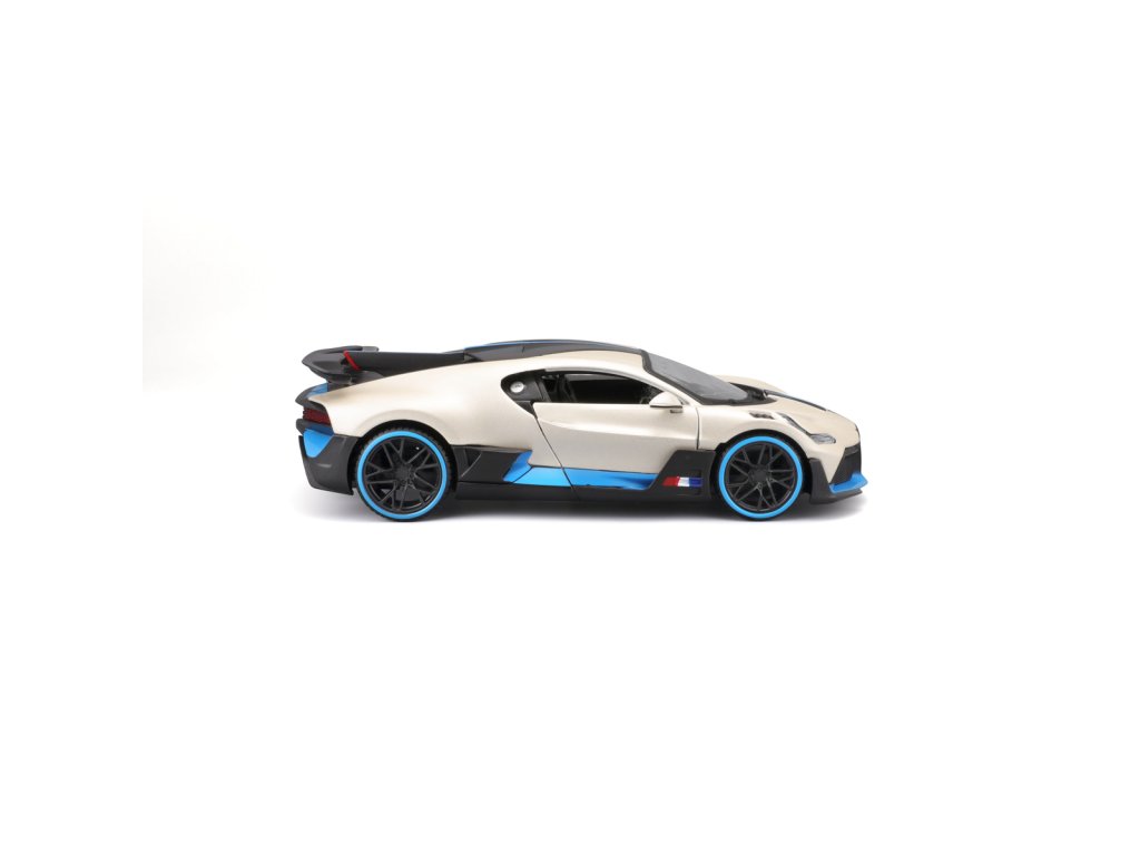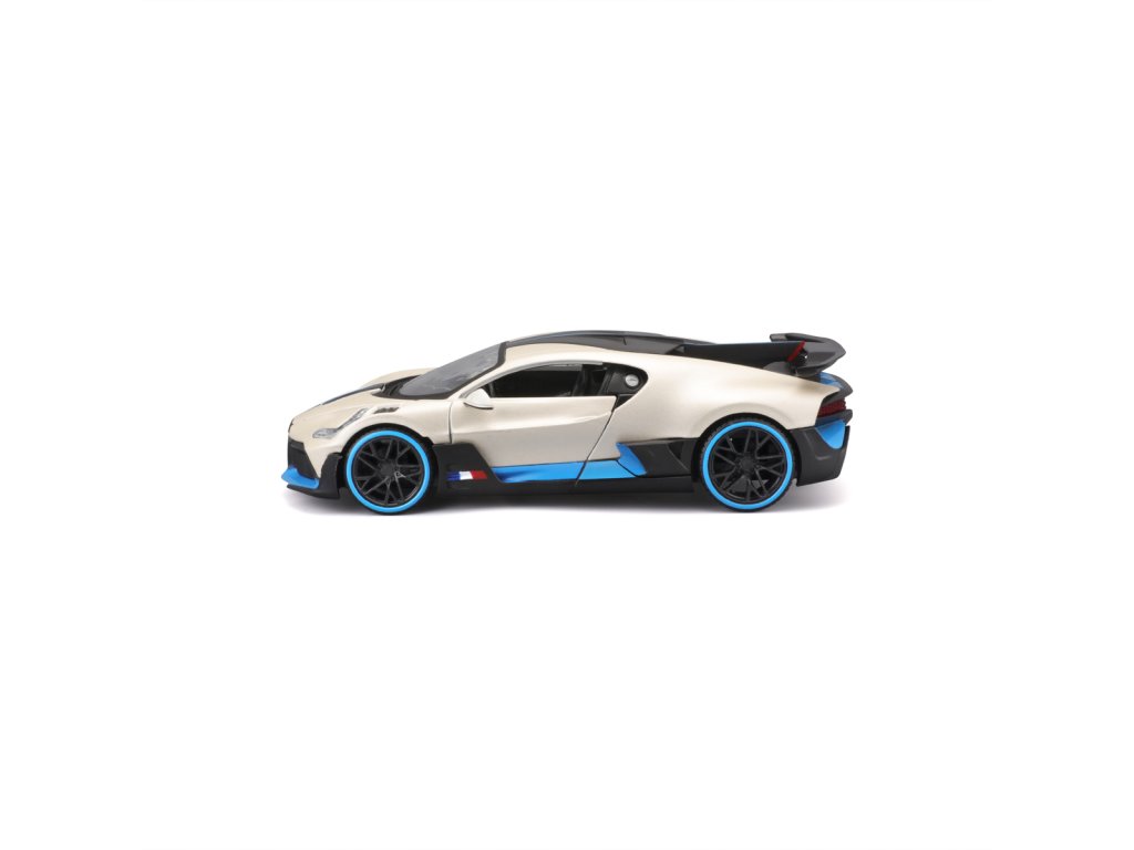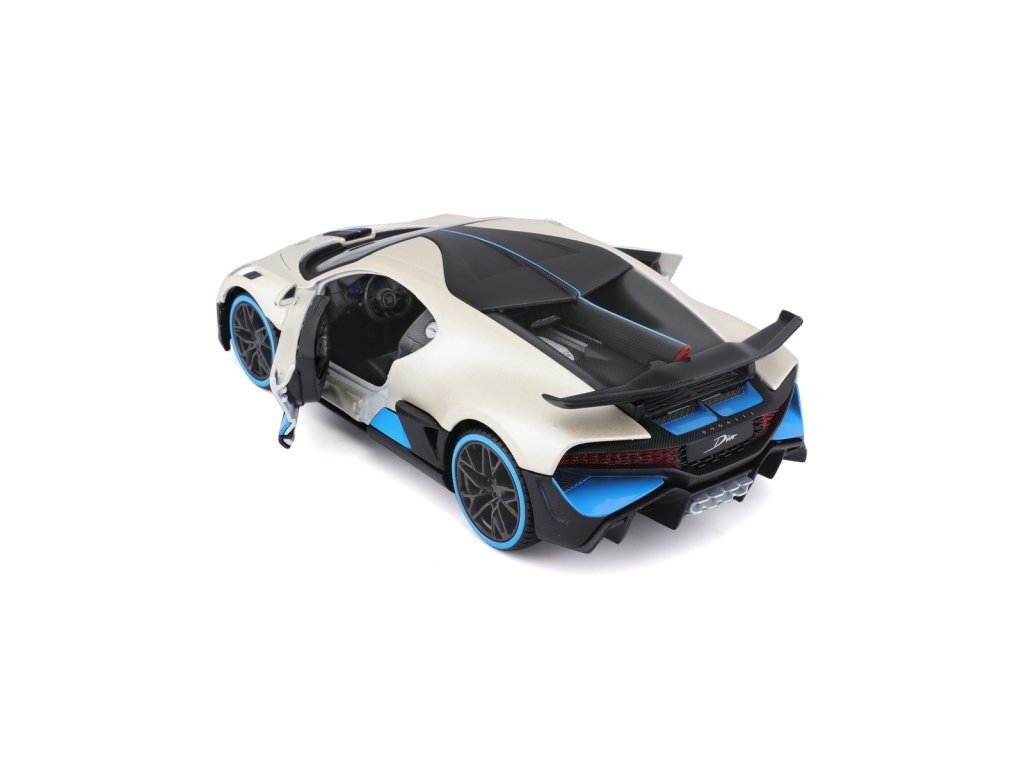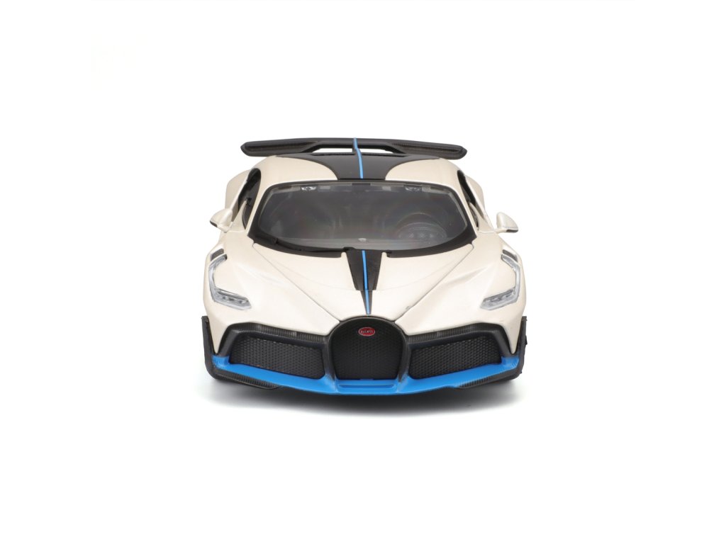 Bugatti Divo, metal bílá. Kovové modely Maisto v měřítku 1:24 patří mezi nejoblíbenější. Mají velmi dokonalé detailní provedení jednotlivých částí a kvalitní barevné provedení. Má otevíratelnou přední kapotu a přední dveře. Baleno v krabičce. Nevhodné pro děti do 3let. Rozměry balení: 22,8x10,5x11,4cm. Věk: 3+