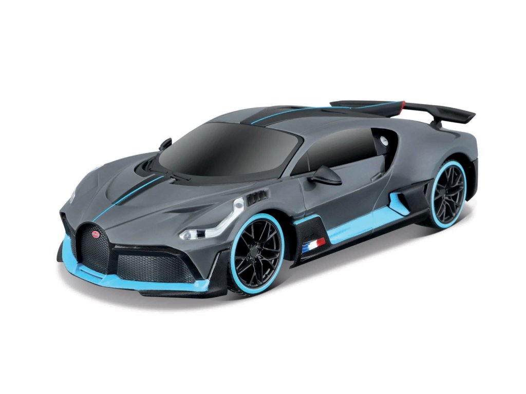 Bugatti Divo. Model auta se světly a zvuky v měřítku 1:24. Stisknutím nárazníku aktivujete světla a zvuky. Vyžaduje 2 AA baterie (součástí balení). Balení: 24,17x10,16x10,8cm. Věk: 5+