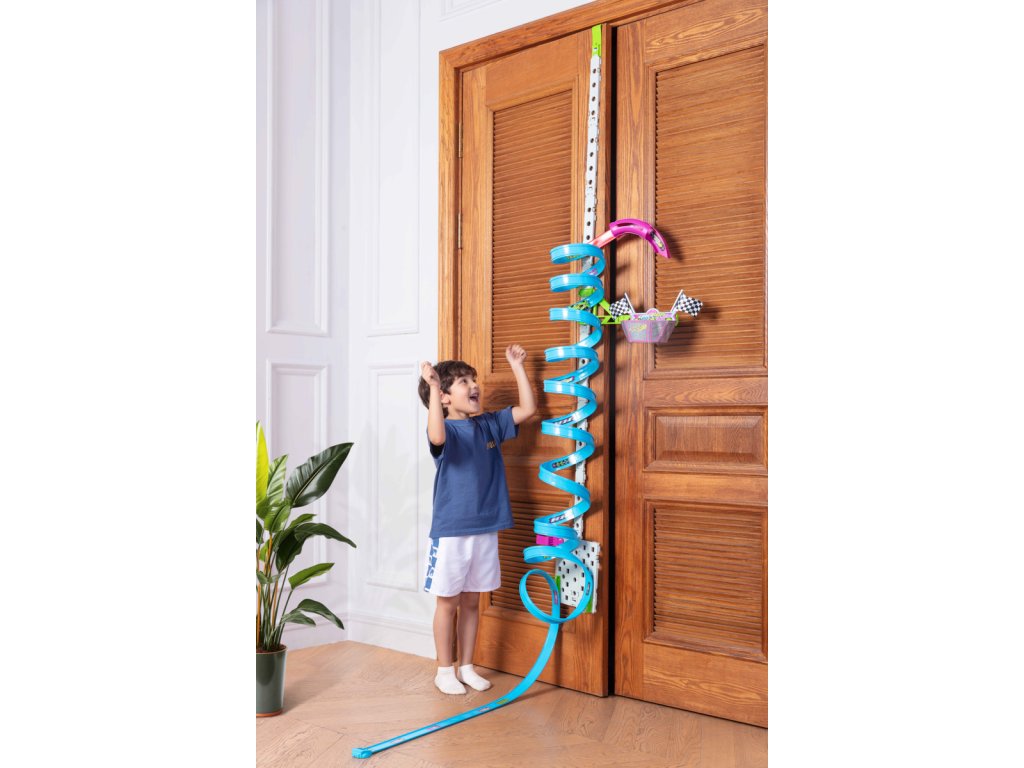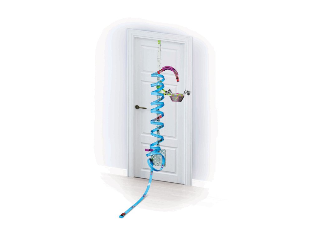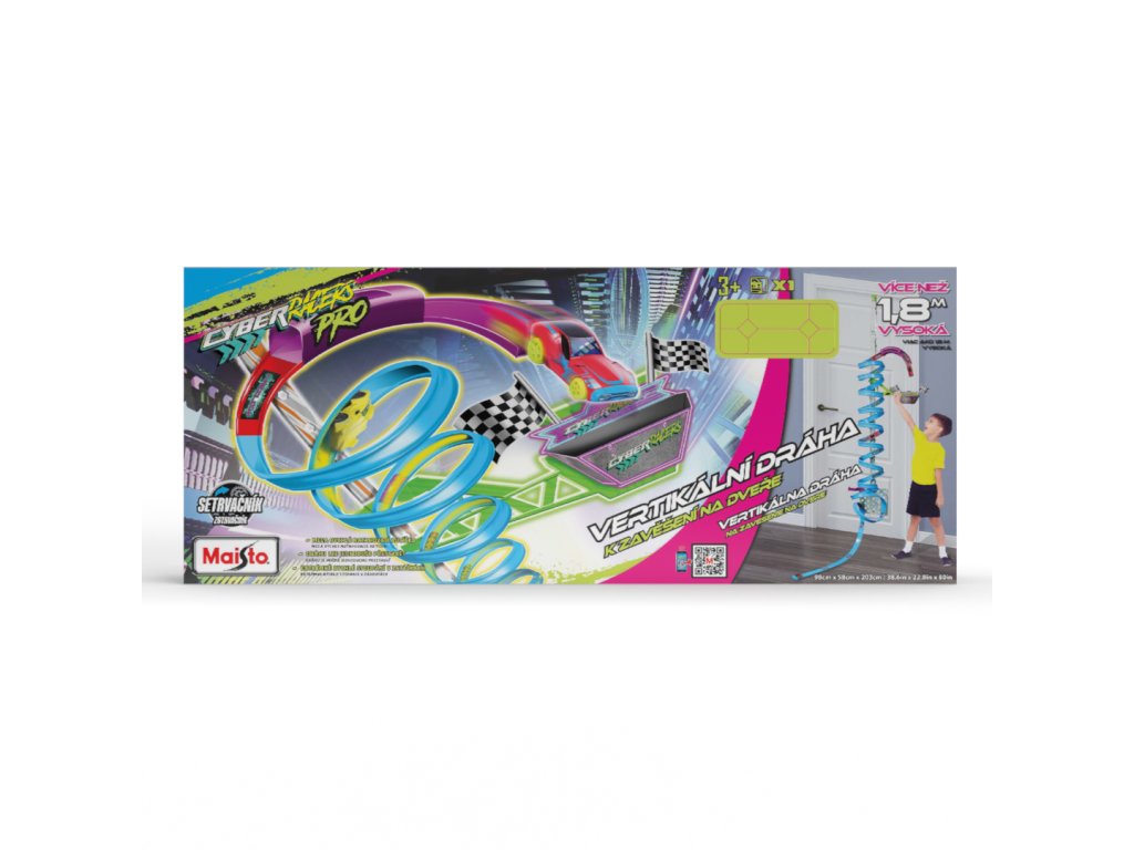 Závodní dráha Cyber Racers Door Hoop od Maisto zaručuje dokonalou zábavu. Závodní dráha je připevněna ke dveřím a díky četným smyčkám zajišťuje vzrušující závody až do 2 metrů vysoké cílové rovinky. Kromě závodní dráhy s cílem obsahuje sada také závěs na dveře a autíčko s motorem na zpětné natahování. Hrací sada je vhodná pro děti od 3 let.