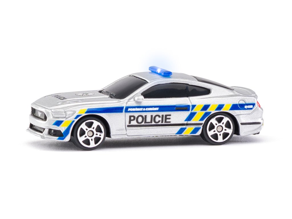 Model policejního vozu v českém designu. Policejní vůz má funkční světla a zvuky. Kovový model s plastovými díly v rozměru 3''. Funguje na 3xAG3 baterie, které jsou součástí balení. Rozměr balení: 11,5x14x5 cm. Věk 3+