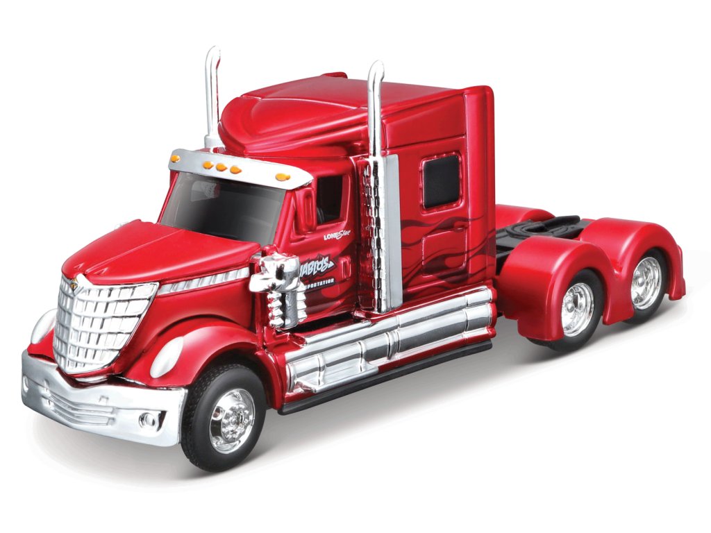 International Lone Star, metal červená. Zcela nové kovové modely tracků s plastovými doplňky. Modely mají gumová kolečka, detailní provedení interierů, včetně výrazného barevného provedení, které jim umožňuje vyniknout od ostatních modelů. Balení: 16,4x8,2x7,6cm. Věk: 8+