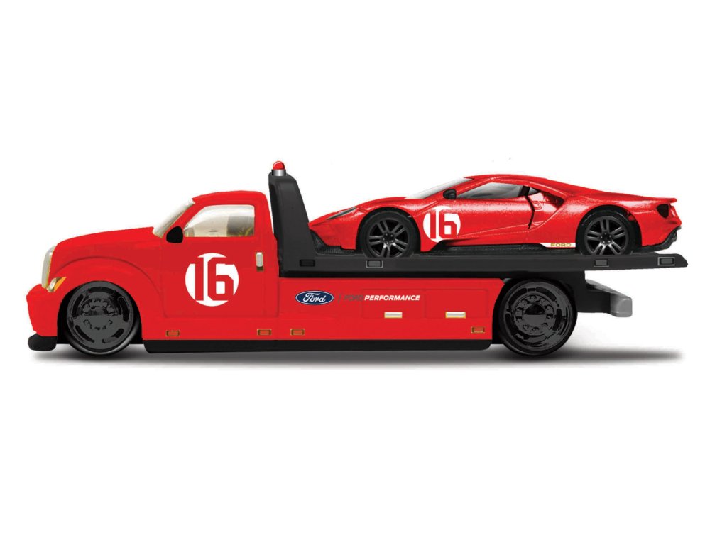 Maisto Flatbed - 2022 Ford GT Heritage Edition, červená, s číslem 16, 1:64