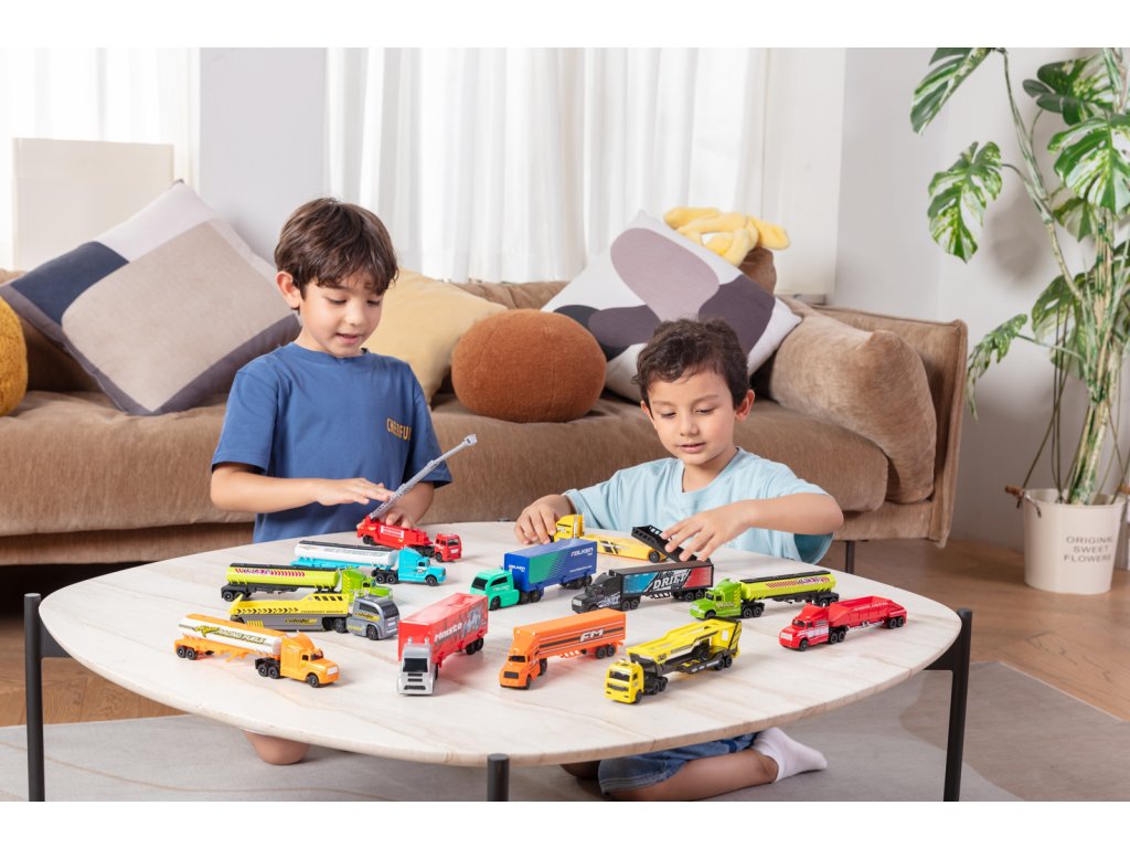 Highway Haulers. Kovový tahač s vlekem. S plastovými dílky. Modely autíček s perfektním propracováním a designem mají kvalitní kovové osy kol. Nevhodné pro děti do 3 let. Baleno v krabičce. Assort je náhodný mix modelů. Výběr nelze ovlivnit. Věk: 3+