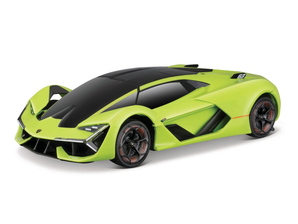 Lamborghini Terzo Millennio. Model auta se světly a zvuky v měřítku 1:24. Stisknutím nárazníku aktivujete světla a zvuky. Vyžaduje 2 AA baterie (součástí balení). Balení: 24,17x10,16x10,8cm. Věk: 5+