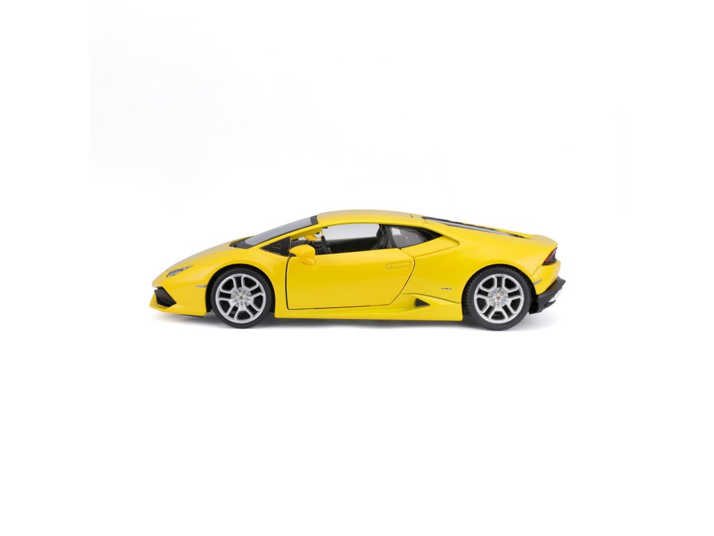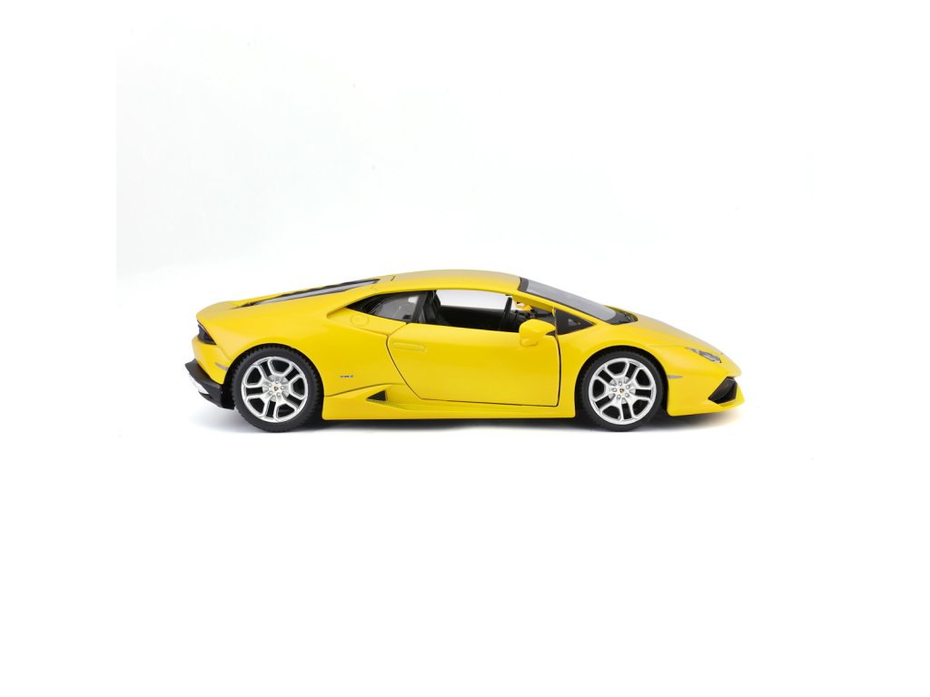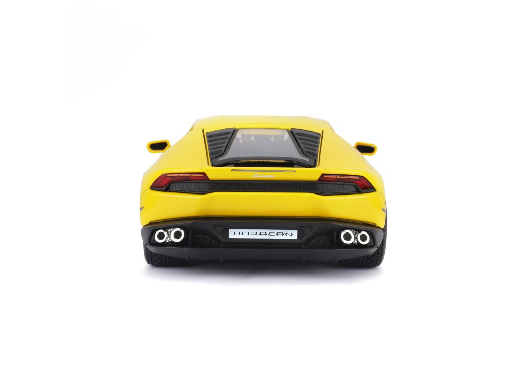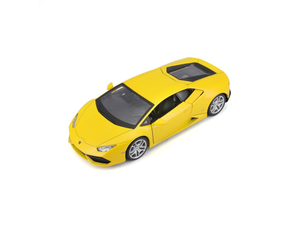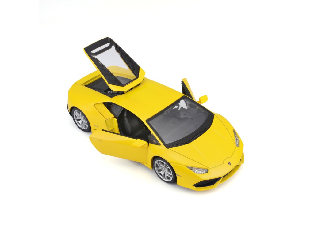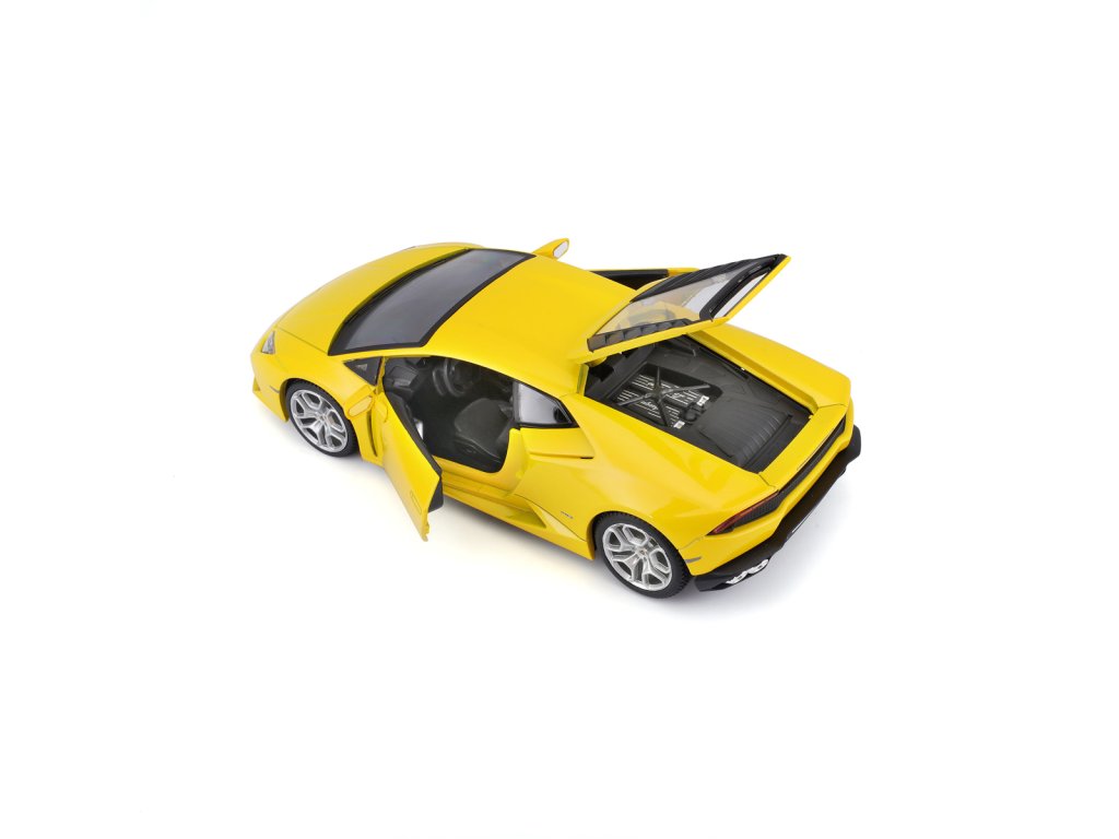 Lamborghini Huracán LP 610-4, perlově žlutá. Kovové modely Maisto v měřítku 1:24 patří mezi nejoblíbenější. Mají velmi dokonalé detailní provedení jednotlivých částí a kvalitní barevné provedení. Má otevíratelnou přední kapotu a přední dveře. Baleno v krabičce. Nevhodné pro děti do 3let. Rozměry balení: 22,8x10,5x11,4cm. Věk: 3+