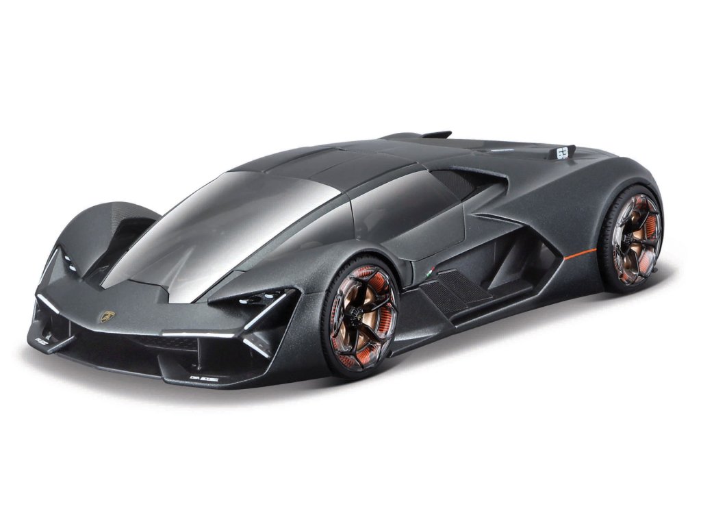Lamborghini Terzo Millennio. Skládací model auta je v měřítku 1:24. Model auta se skládá podle obrázkového návodu, který je součástí stavebnice. Jednotlivé části se spojují tlakem bez pomoci lepidla. Součástí balení je šroubovák. Balení obsahuje 34 dílů. Měřítko 1:24. Model má otvírací dveře. Kovové části jsou natřené netoxickými barvami. Rozměry balení: 22,9x16,8x10,2cm. Věk: 8+