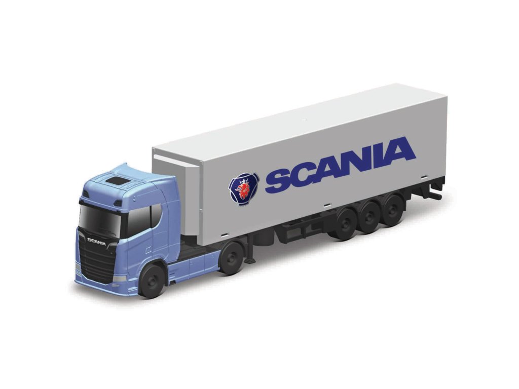 Kontejnerový přívěs Scania 770S. Velký a silný tahač. Kovové autícko s plastovými detaily a opravdovými gumovými pneumatikami. Balení: 27,5x8x4,8cm. Věk: 8+