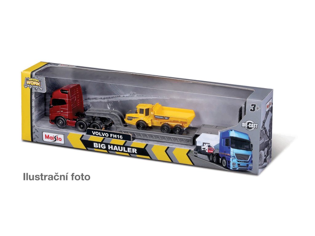 Sada velkého tahače. Velký a silný tahač, který veze mini verzi pracovního stroje. Kovové autícko s plastovými detaily a opravdovými gumovými pneumatikami. Balení: 27,5x8x4,8cm. Věk: 8+