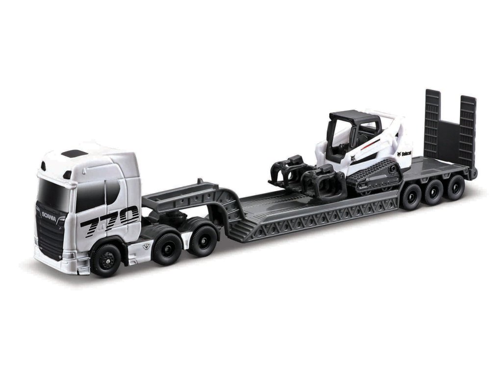 Volvo FH16, Bobcat T590. Velký a silný tahač, který veze mini verzi pracovního stroje. Kovové autícko s plastovými detaily a opravdovými gumovými pneumatikami. Balení: 27,5x8x4,8cm. Věk: 8+