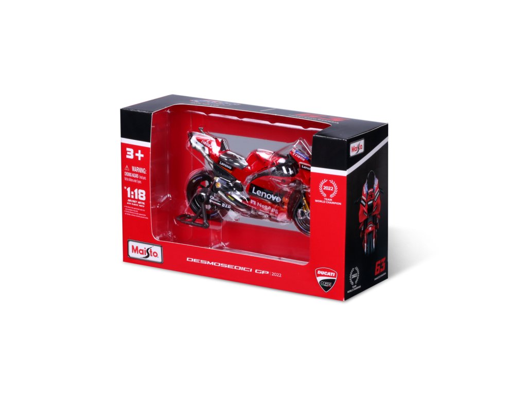 Maisto - Motocykl, Ducati Lenovo Team 2022, assort (63 Francesco Bagnaia+43 Jakc Miller), 1:18