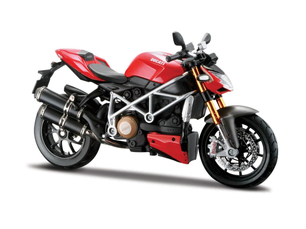 Ducati SUPER NAKED S. Modely motocyklů v měřítku 1:12 mají u svých fanoušků velkou oblíbenost pro jejich dokonalé provedení a především velikost cca. 16 cm. Motocykly mají otáčivá řidítka a odpruženou zadní nápravu. Baleno v krabičce. Balení: 21,2x12x7cm. Věk: 3+