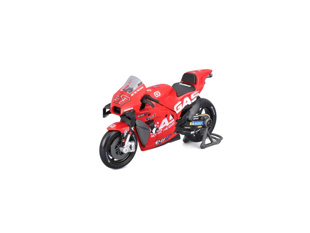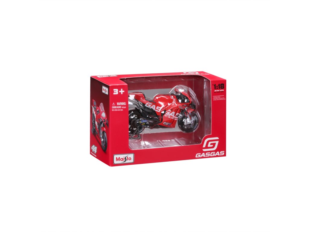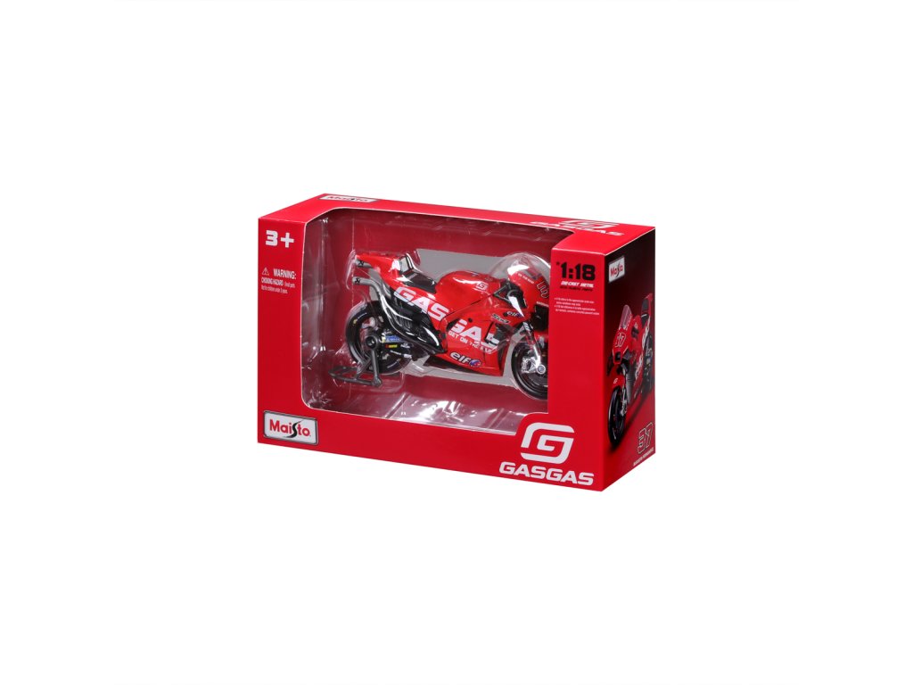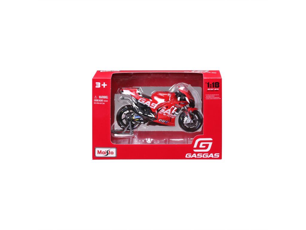 Motocykl GP Racing 1:18 GASGAS Factory Racing Tech3 2023, #37 Augusto Fernandez. Model oficiálního licencovaného závodního týmu má velmi dokonalé, detailní provedení jednotlivých částí a kvalitní barevné provedení. Kovový model s plastovými detaily. Model má volně se otáčející kola a je včetně podpěrného stojanu. Baleno v krabičce. Nevhodné pro děti do 3 let. Rozměry balení: 10,5 x 17,1 x 7 cm. Věk: 3 +