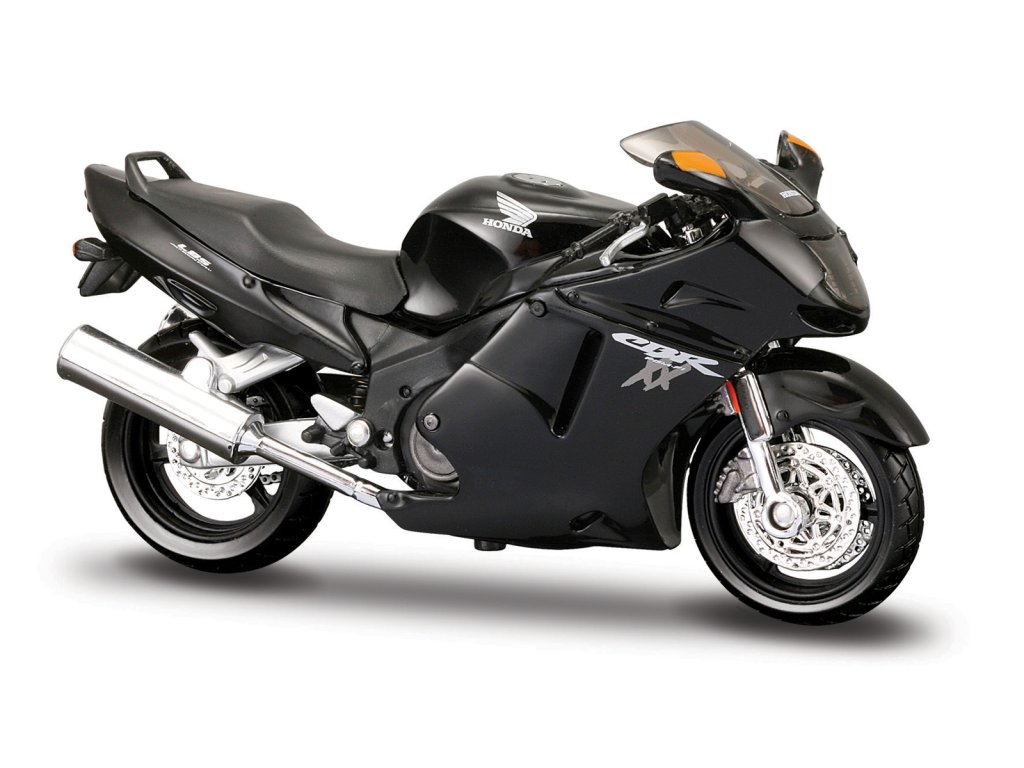 Honda CBR 1100XX. Kovové modely motocyklů v modelovém měřítku 1:18. Motocykly mají otáčivá řidítka a odpruženou zadní nápravu. Jsou usazeny na černém plastovém podstavci. Rozměry balení: 15,7x10,4x6,8cm. Věk: 3+
