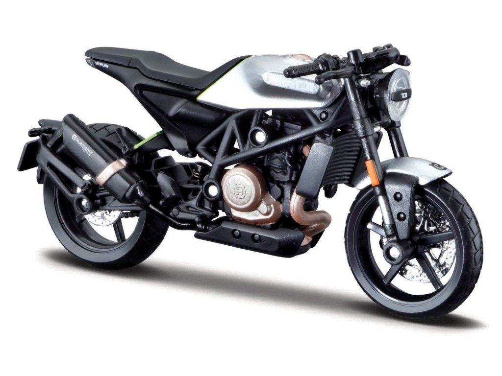 Husqvarna Motorcycles Vitpilen 701 2018. Kovové modely motocyklů v modelovém měřítku 1:18. Motocykly mají otáčivá řidítka a odpruženou zadní nápravu. Jsou usazeny na černém plastovém podstavci. Rozměry balení: 16x10,5x7cm. Věk: 3+