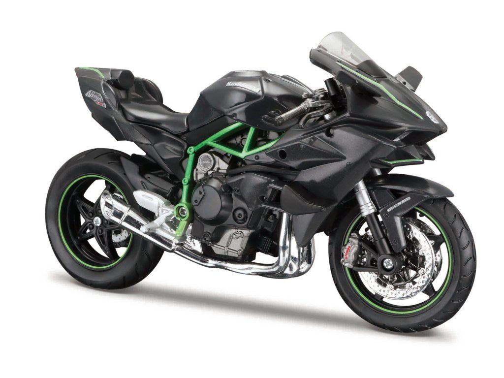Kawasaki Ninja H2 R. Modely motocyklů v měřítku 1:12 mají u svých fanoušků velkou oblíbenost pro jejich dokonalé provedení a především velikost cca. 16 cm. Motocykly mají otáčivá řidítka a odpruženou zadní nápravu. Baleno v krabičce. Nevhodné pro děti do 3 let. Věk: 3+