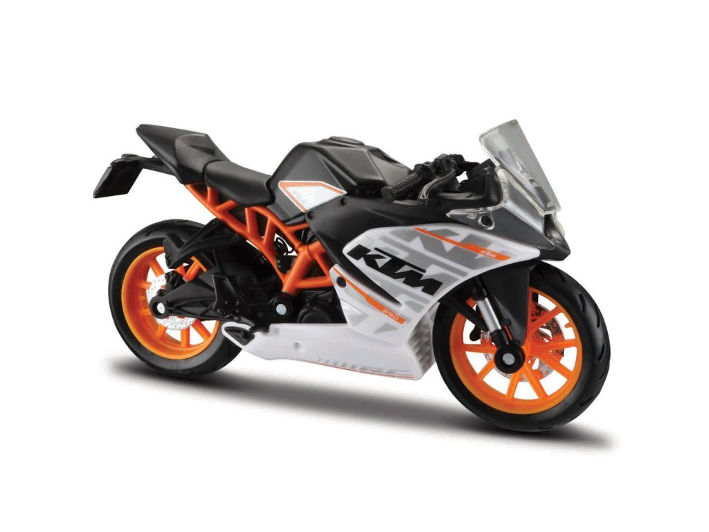 KTM RC 390. Kovové modely motocyklů v modelovém měřítku 1:18. Motocykly mají otáčivá řidítka a odpruženou zadní nápravu. Jsou usazeny na černém plastovém podstavci. Rozměry balení: 16x10,5x7cm. Věk: 3+