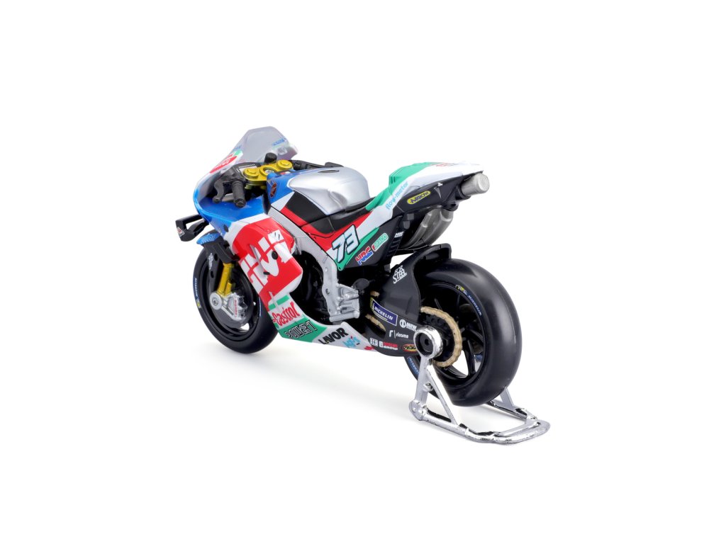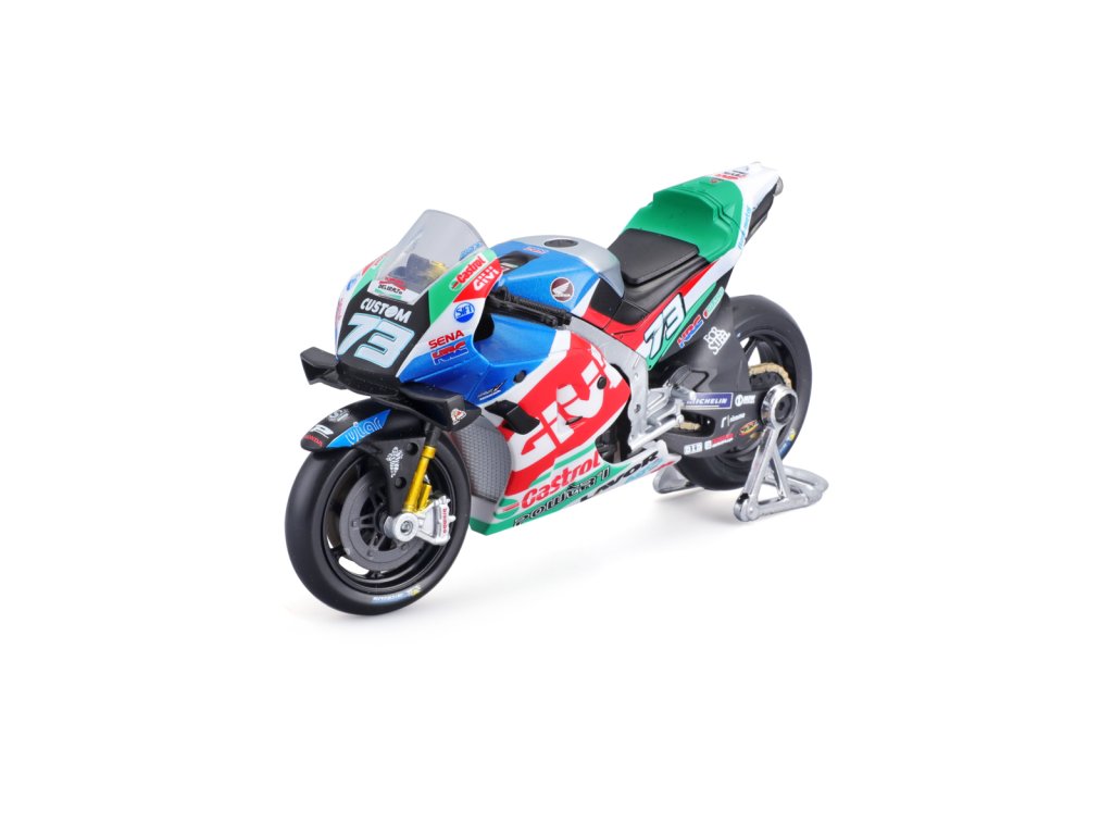 LCR Honda 2021. Model motocyklu v měřítku 1:18 vyrobený z kovových a plastových dílů. Motocykl je zabalen v papírové krabičce s fóliovým průhledem. Otočná řídítka, odpružená zadní vidlice. #73 Alex Marquez. Rozměr balení: 17,1x10,5x7cm. Věk: 3+