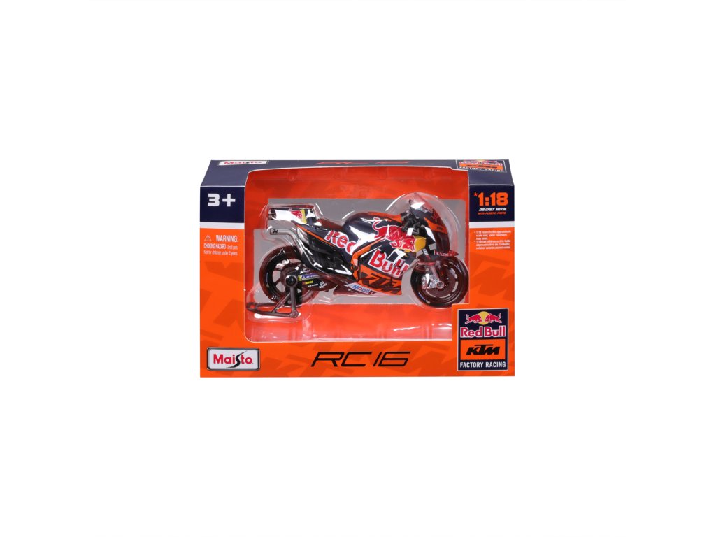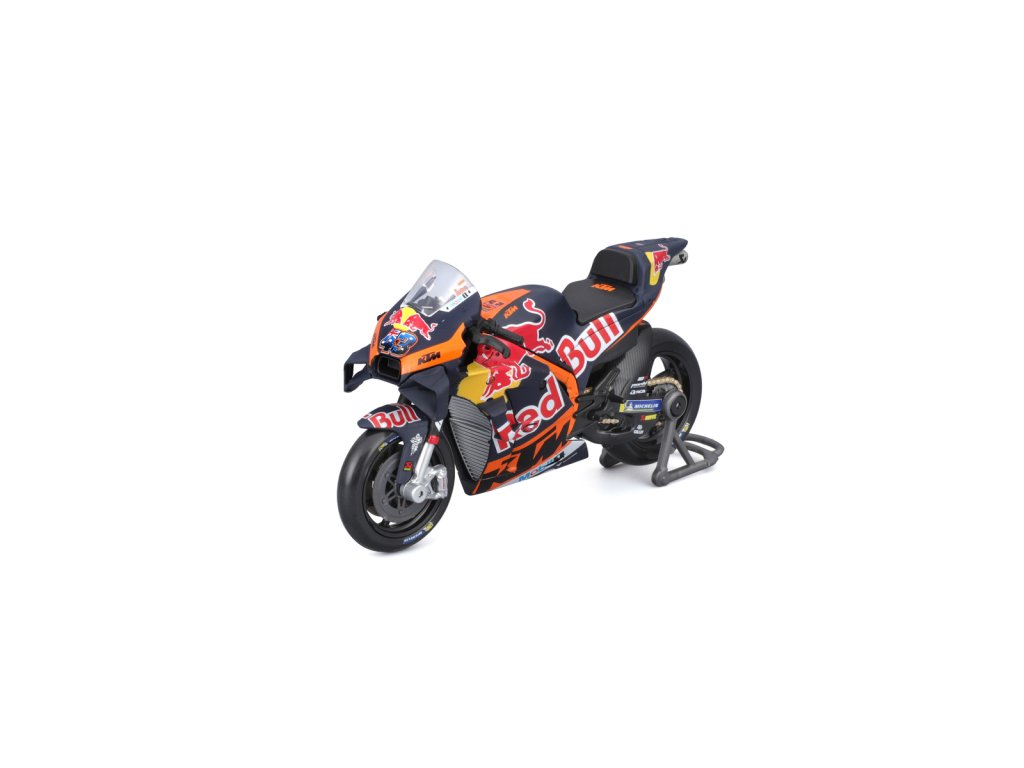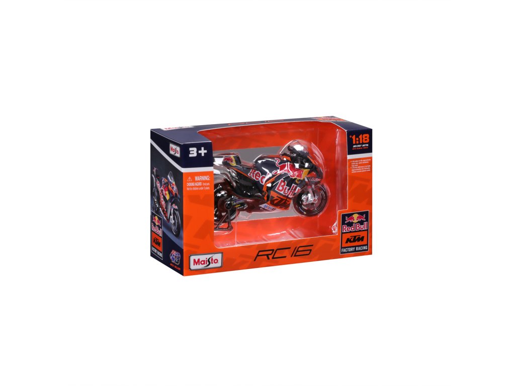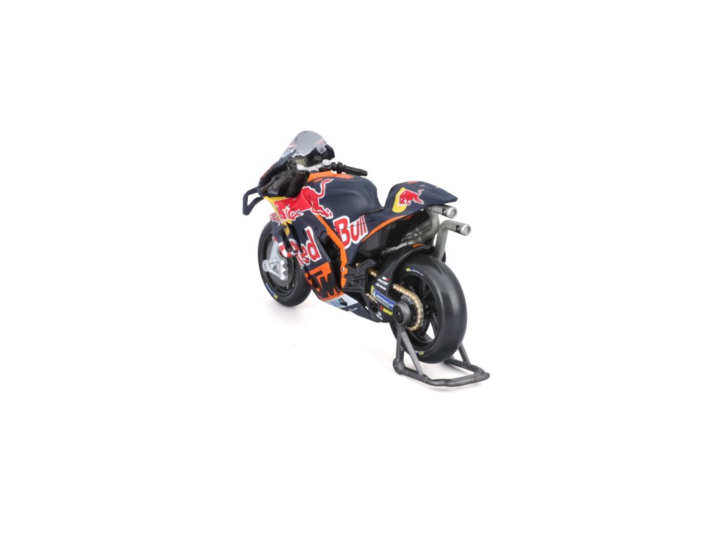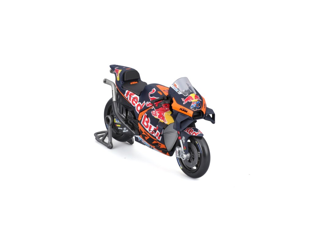 Motocykl GP Racing 1:18 Red Bull KTM Factory Racing 2023, #43 Jack Miller. Model oficiálního licencovaného závodního týmu má velmi dokonalé, detailní provedení jednotlivých částí a kvalitní barevné provedení. Kovový model s plastovými detaily. Model má volně se otáčející kola a je včetně podpěrného stojanu. Baleno v krabičce. Nevhodné pro děti do 3 let. Rozměry balení: 10,5 x 17,1 x 7 cm. Věk: 3 +